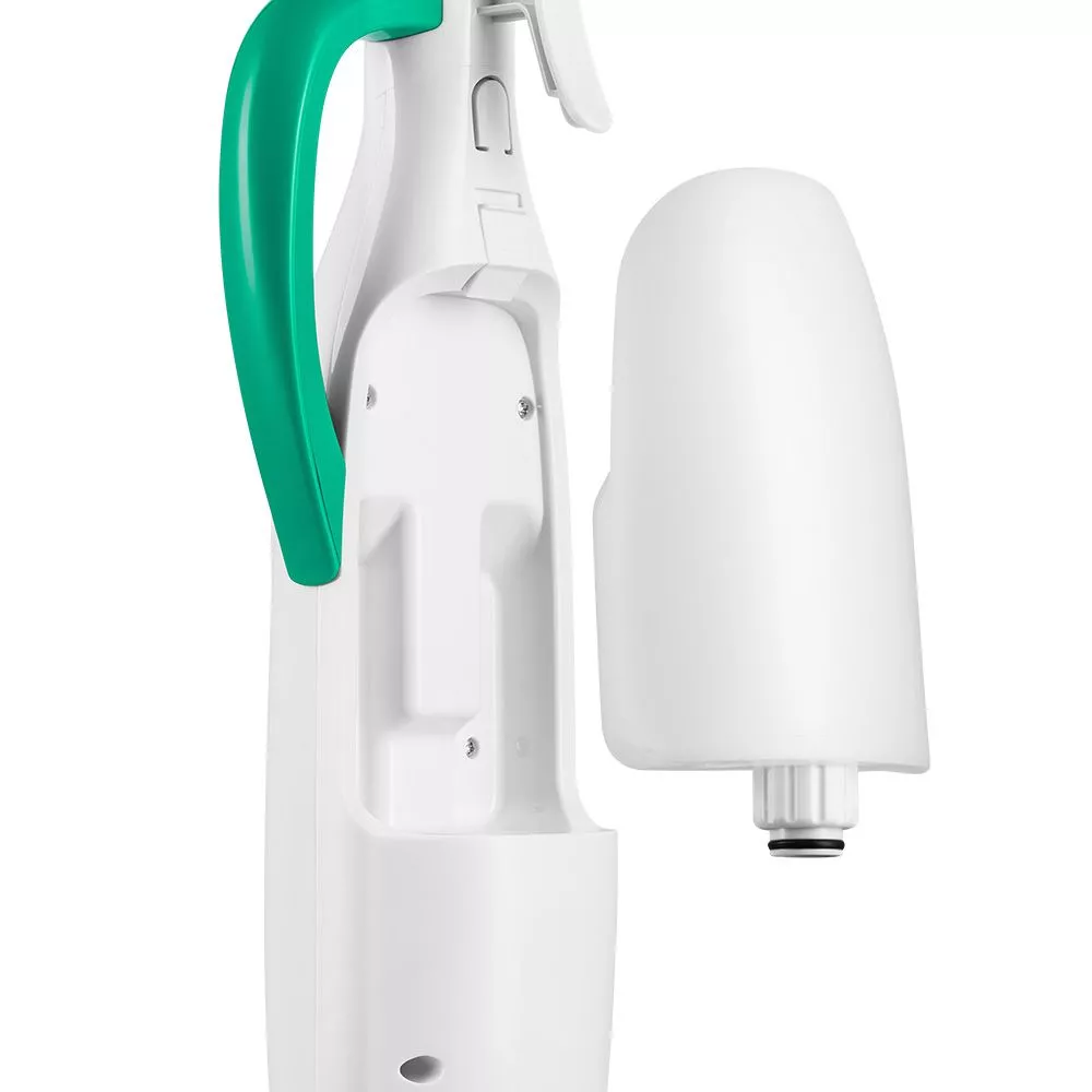Устройство обладает большим углом наклона при уборке, который поможет легко убирать пространство под мебелью. Напольная насадка закреплена на специальном шаровом шарнире с наклоном в двух плоскостях, что делает швабру очень маневренной и облегчает уборку.