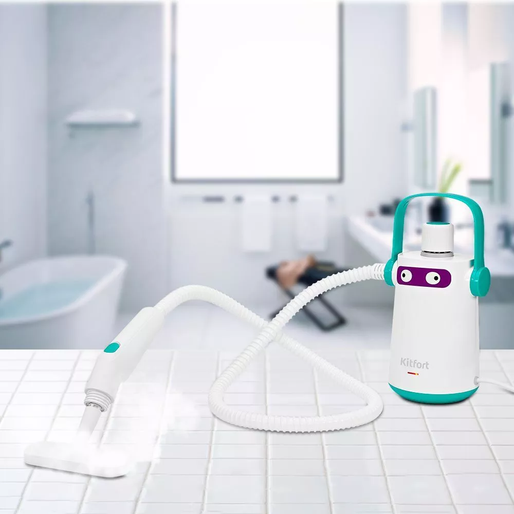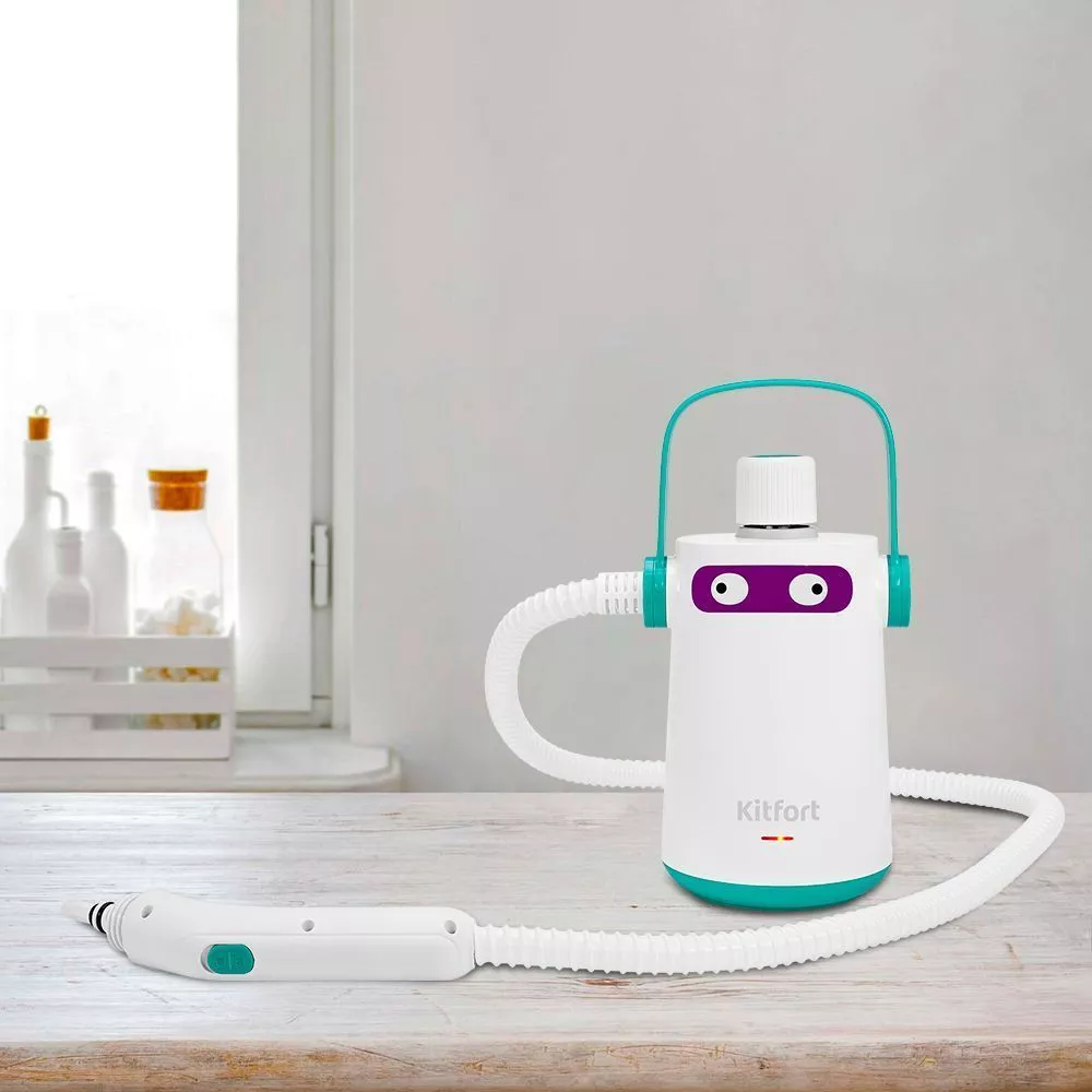 В комплекте с пароочистителем идёт мерный стакан, все необходимые насадки и воронка для удобного добавления воды в бойлер. Ёмкость бойлера составляет 0,3 л.