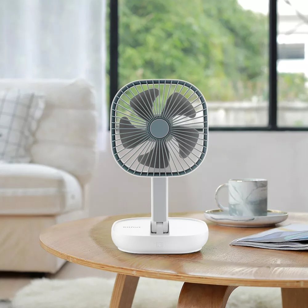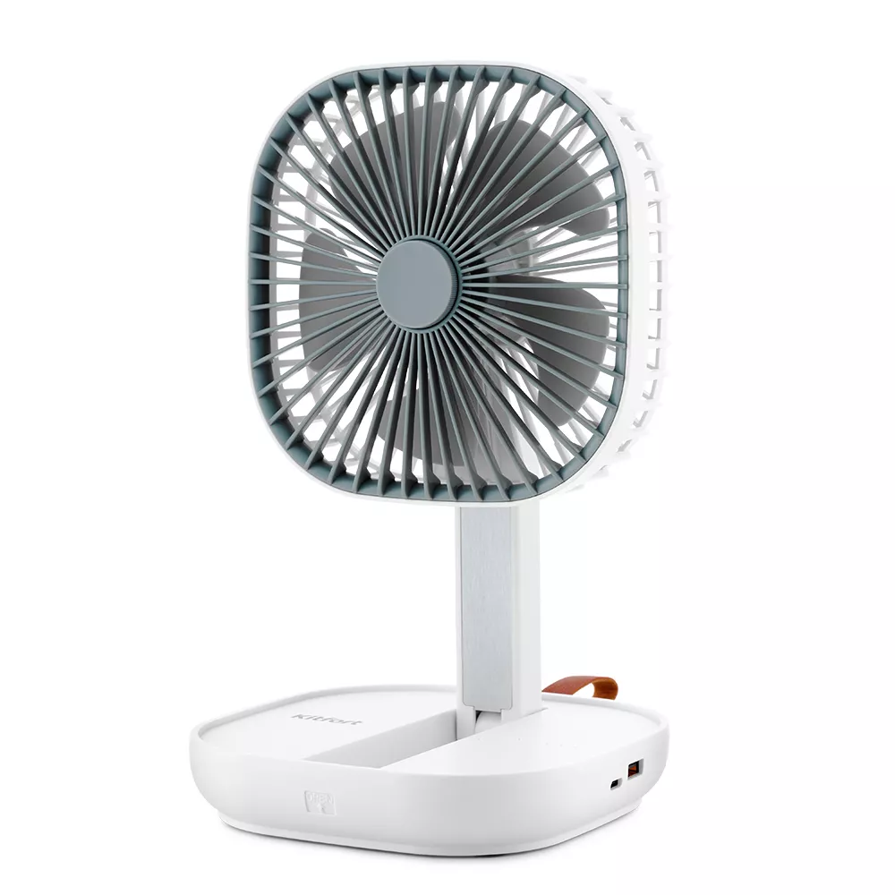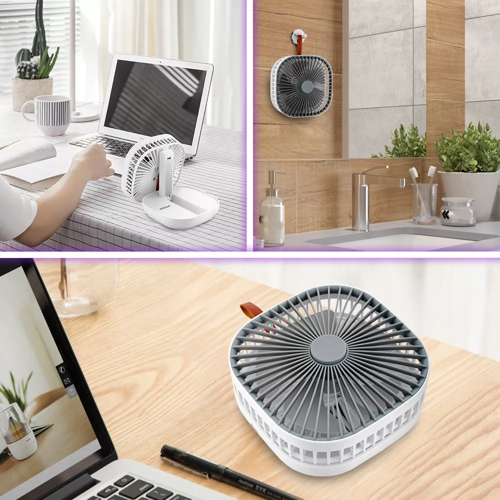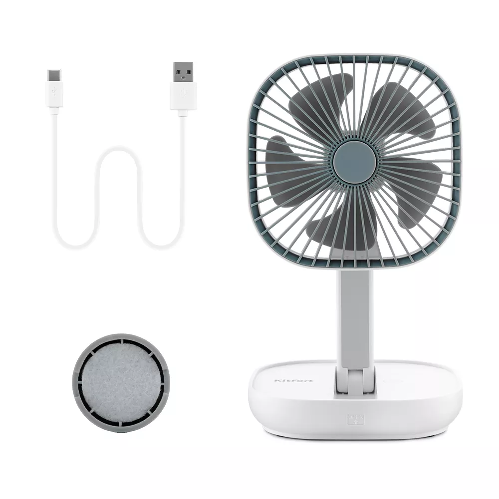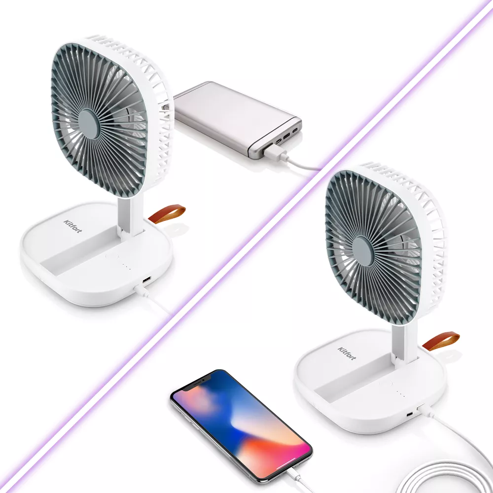 Вентилятор может складываться, благодаря чему его размеры значительно изменяются. В сложенном виде его можно взять с собой, положив в сумку. Или же его можно повесить за крючок на стену, например в ванную комнату.