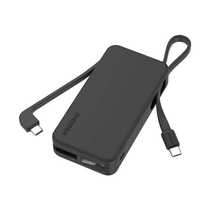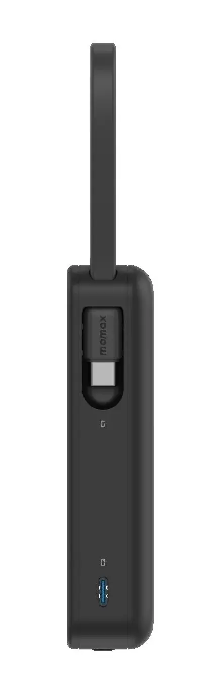 Два встроенных USB-C кабеля обеспечивают удобство и избавляют от необходимости носить с собой дополнительные кабели, что делает процесс зарядки более простым и надежным.