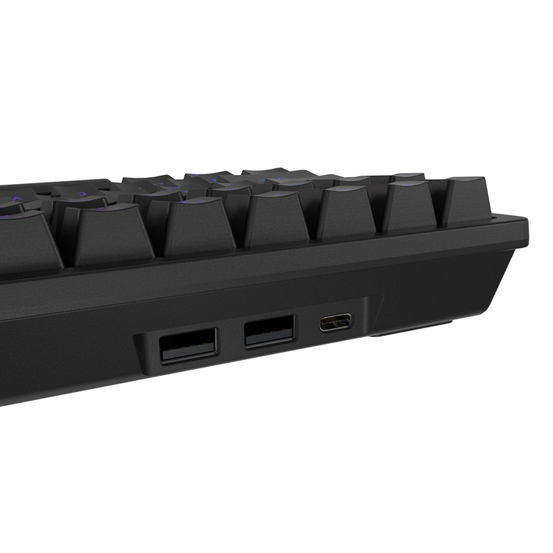 Клавиатура оснащена RGB подсветкой клавиш, отсоединяемым кабелем USB Type-C и беспроводным подключением через радио и Bluetooth.