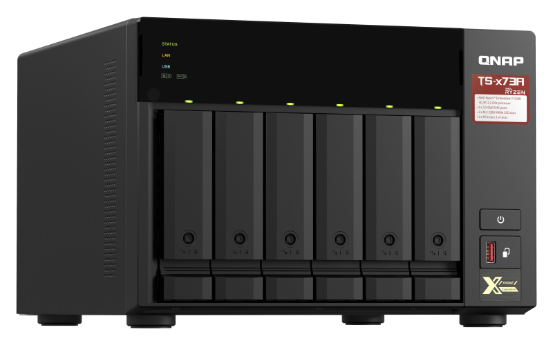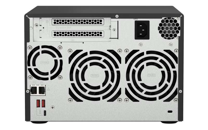TS-673A оснащен двумя сетевыми портами 2,5 Гбит/c RJ45, к которым подключаются существующие кабели CAT5e, при этом скорость сети повышается с 1 Гбит/с до 2,5 Гбит/с. Порты также поддерживают транкинг для повышения скорости передачи данных до 5 Гбит/с. С помощью адаптера QNAP N-BASET / Multi-Gig USB 3.2 Gen 1 - 5 GbE или карт расширения PCIe 5 GbE можно подключить ноутбук или настольный компьютер к сетям 2,5 Гбит/c совместно с TS-673A.