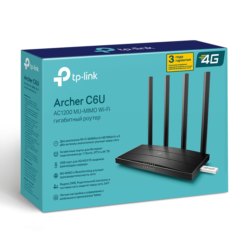 • Одновременные подключения до 300 Мбит/с на 2,4 ГГц и до 867 Мбит/с на 5 ГГц — общая скорость до 1200 Мбит/с• 4 внешние антенны обеспечивают стабильное беспроводное подключение и оптимальное покрытие