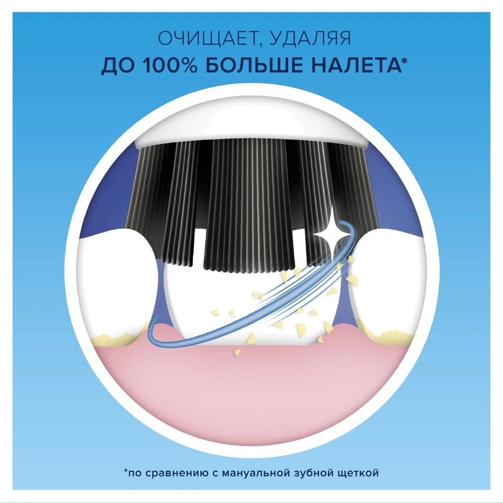 Круглая зубная щетка оснащена встроенным таймером, который помогает соблюдать рекомендованные 2 минуты чистки и делит процесс на 30–секундные интервалы, напоминая вам о необходимости смены зоны чистки. Это помогает обеспечить тщательную гигиену и избежать пропуска важных участков зубов.