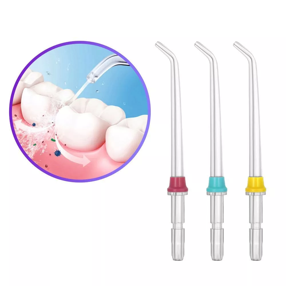 В комплекте с ирригатором идут 3 классические струйные насадки. С их помощью можно очистить труднодоступные места во рту. На самих насадках есть цветные уплотнительные кольца, чтобы их не путать.