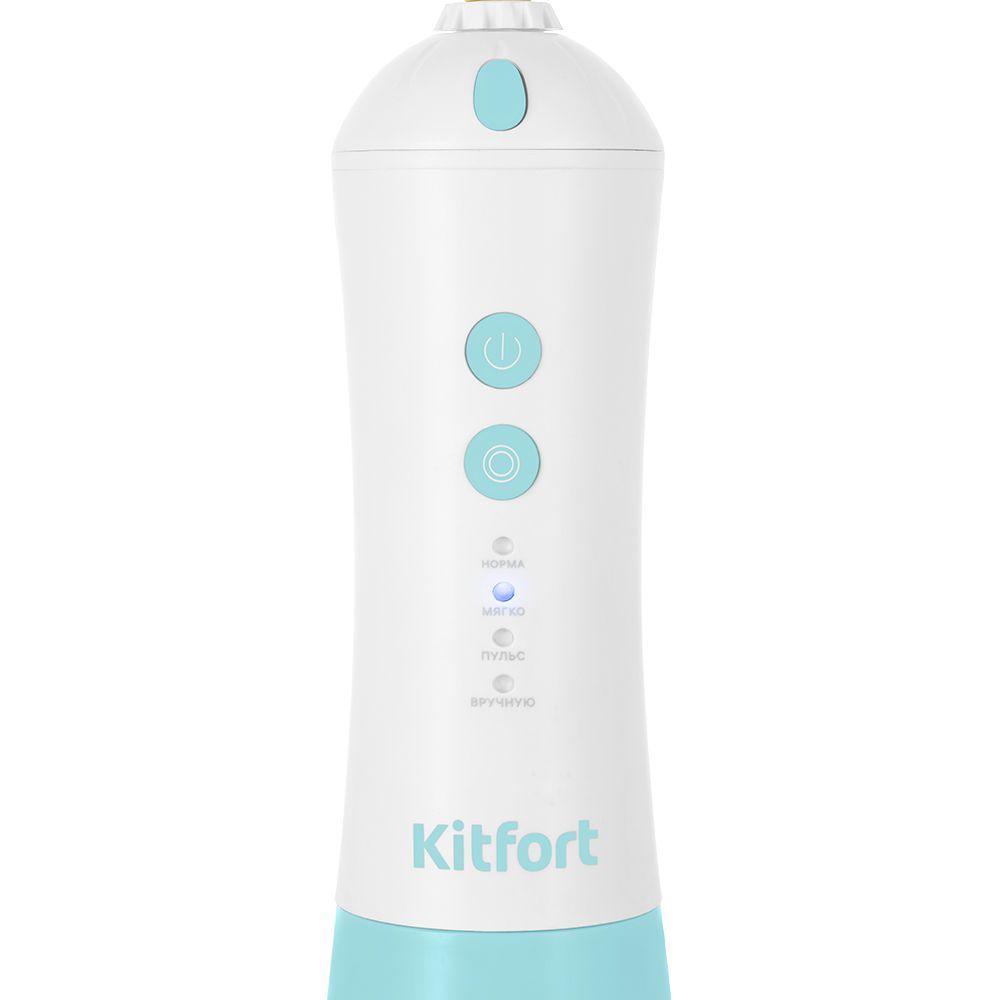 У КТ-2958 есть 4 режима работы: «Норма», «Мягко», «Пульс» и «Вручную». Начинать стоит с самого слабого режима «Мягко» и постепенно переходить на более сильные режимы по мере привыкания дёсен. При работе на корпусе светится индикатор выбранного режима. Ирригатор имеет автоматическое отключение после 2 мин непрерывной работы.