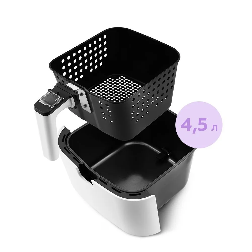 Съёмный поддон и корзина имеют антипригарное покрытие, благодаря чему они легко чистятся после использования, а блюда можно готовить практически без добавления масла.