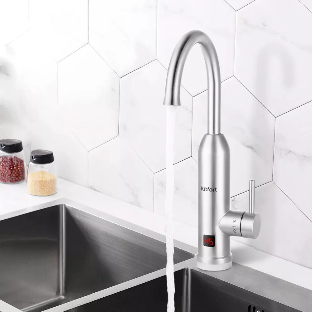 В корпусе установлен ТЭН, который быстро нагревает воду, проходящую через устройство. С помощью КТ-4032 вы можете нагревать воду до 65°C, при этом вам не нужно ждать, когда бойлер нагреется. Время использования горячей водой ничем не ограничивается.