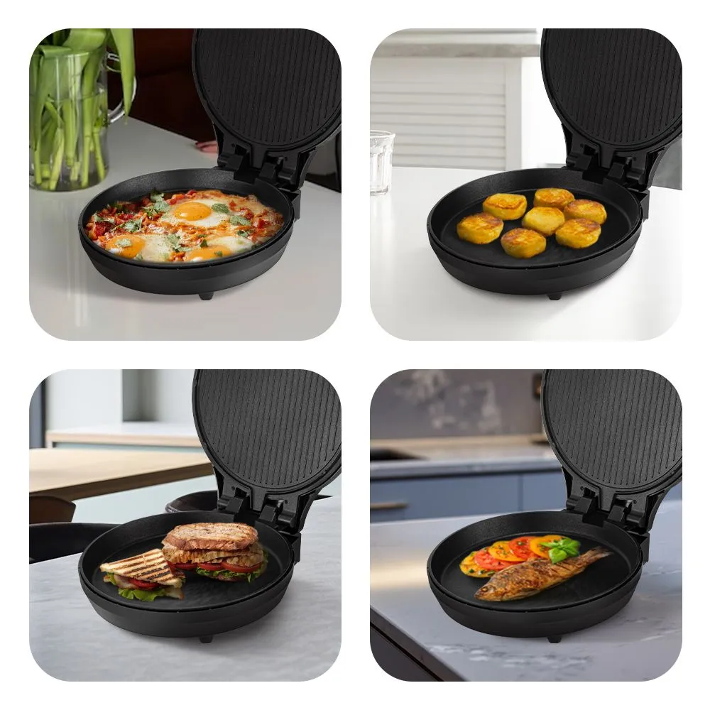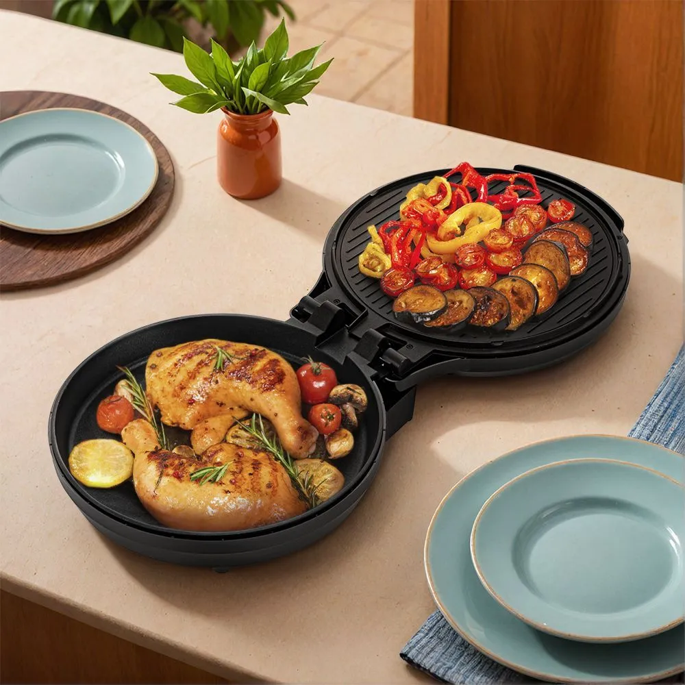 Конструкция пиццамейкера позволяет готовить в двух режимах: двустороннем и одностороннем. В двухстороннем режиме прибор закрывается крышкой. В одностороннем режиме верхняя панель откидывается на 180°, и пиццамейкер превращается в большую жаровню.