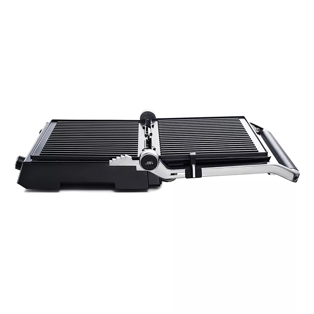 В одностороннем режиме крышка гриля откидывается на 180 °, и гриль превращается в большую жаровню. Для приготовления можно использовать обе поверхности. Гриль оснащен термостатом с плавной регулировкой, позволяющим выставить температуру вплоть до 230 °С