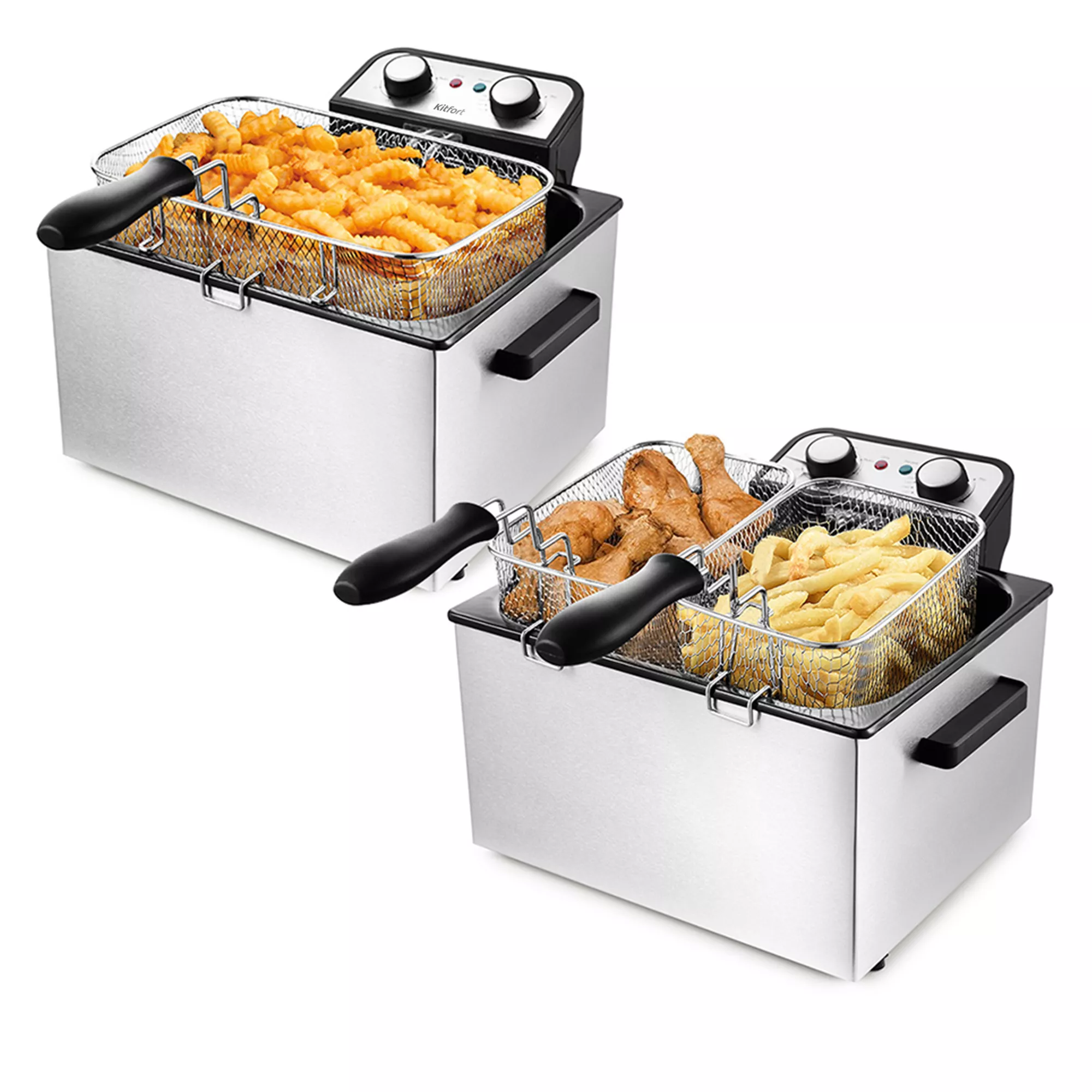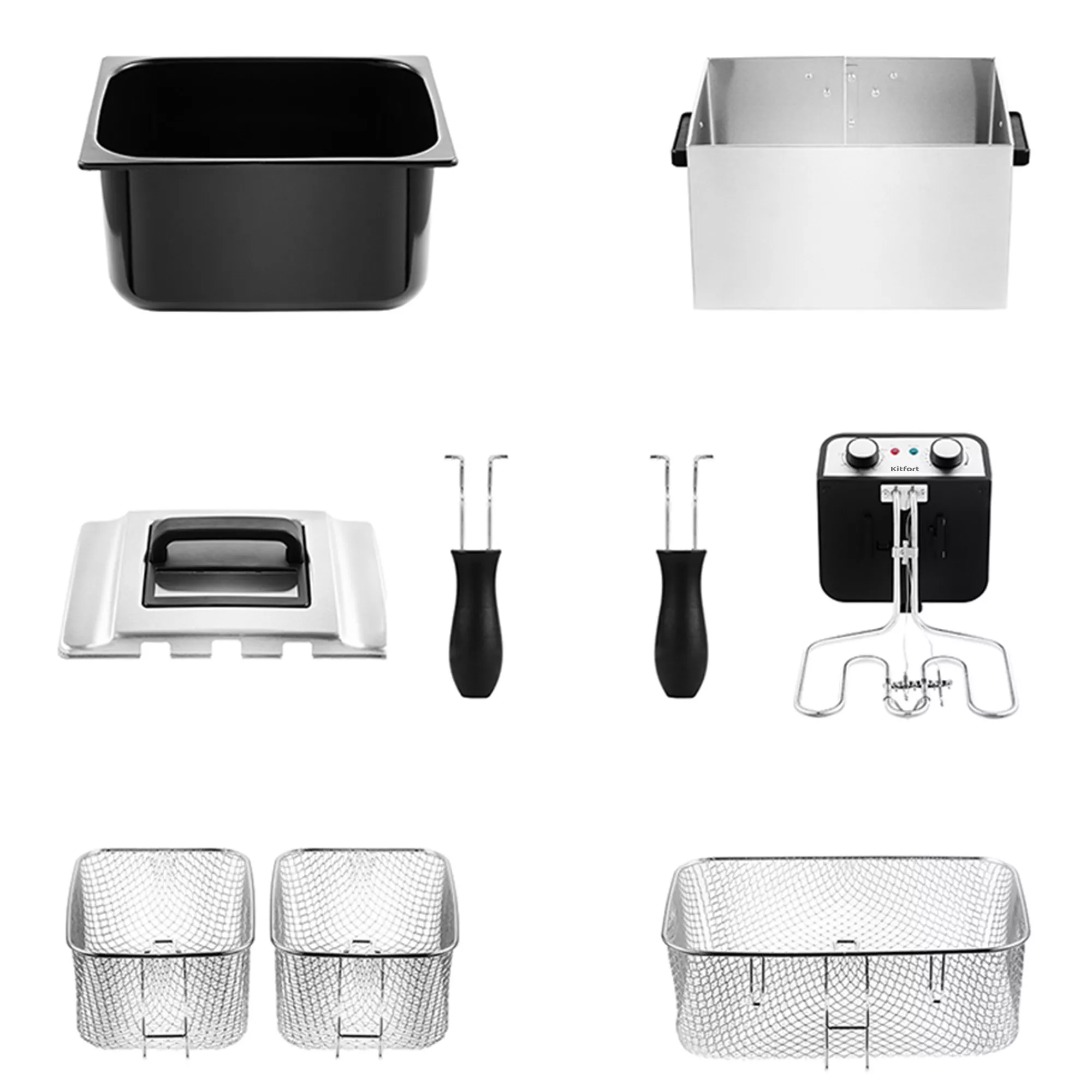 Фритюрница укомплектована тремя корзинами для жарки - одной большой и двумя маленькими. Малые корзины вы можете устанавливать во фритюрницу одновременно. Это удобно, если вы хотите приготовить два различных блюда.