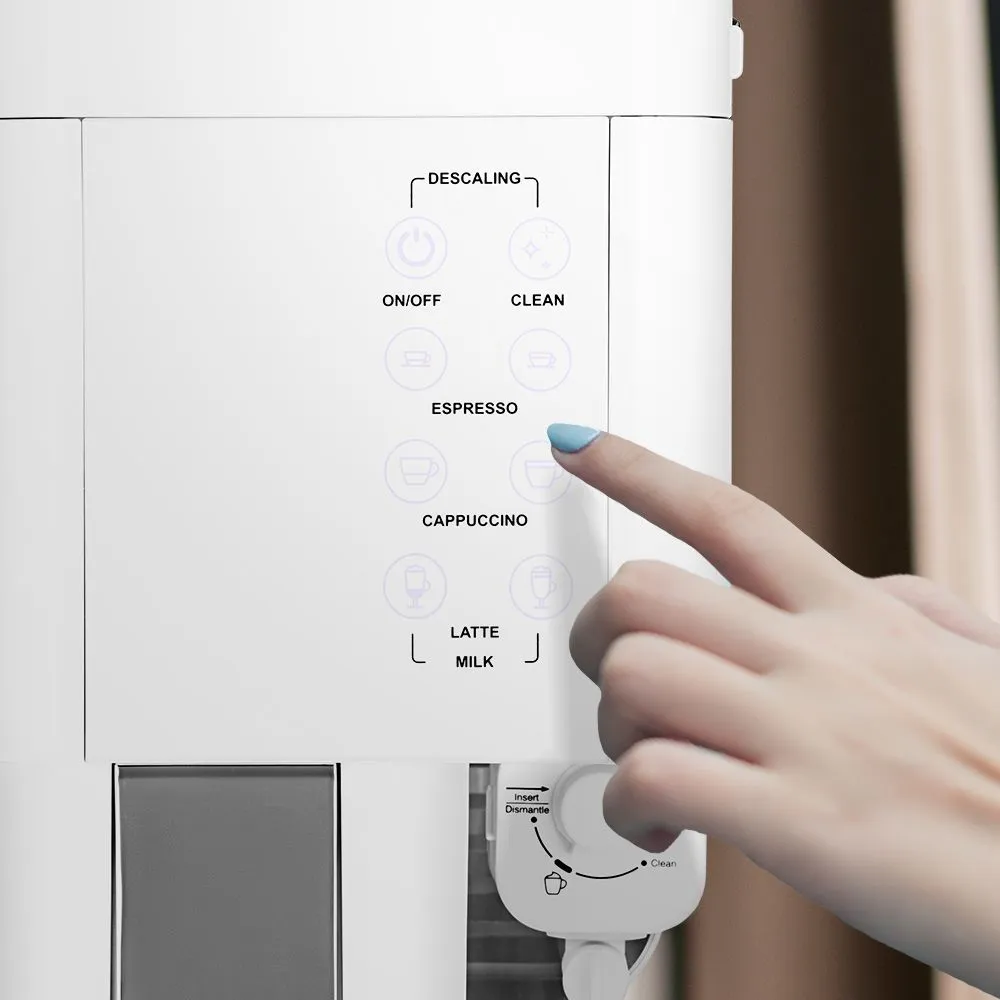 Простая панель управления поможет с легкостью приготовить любой из самых популярных кофейный напитков – латте, капучино или эспрессо. Также можно выбрать и объём напитка – маленький или стандартный.