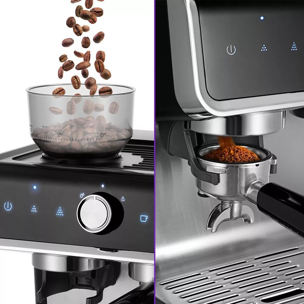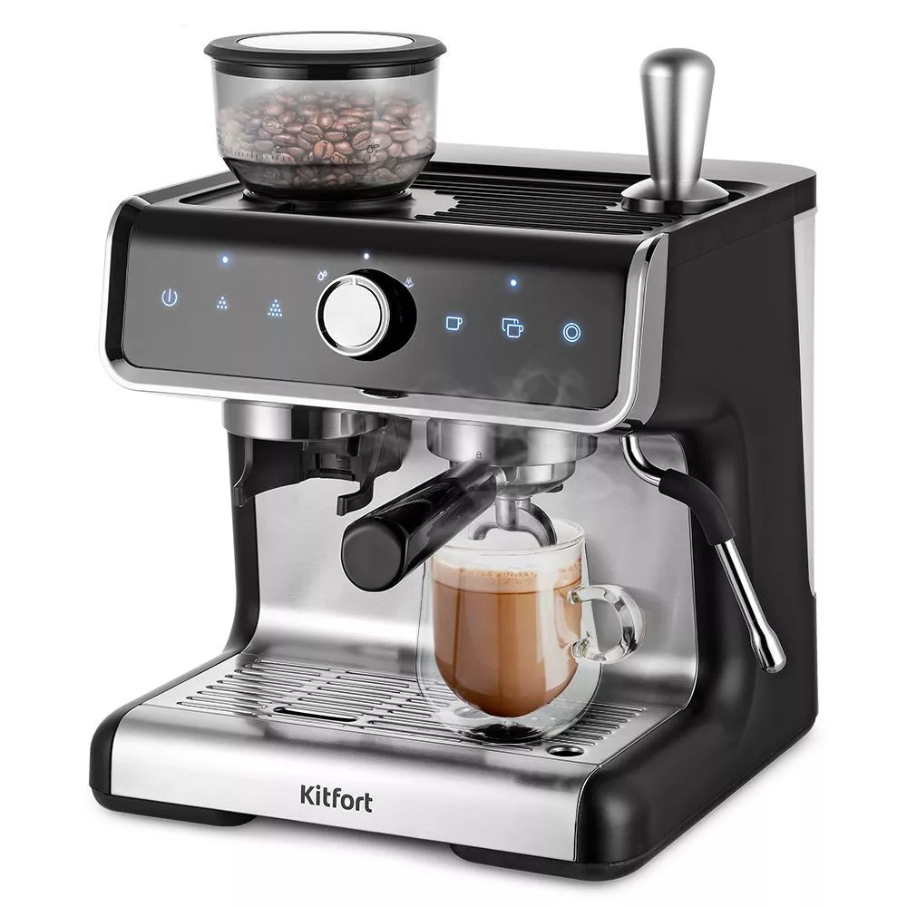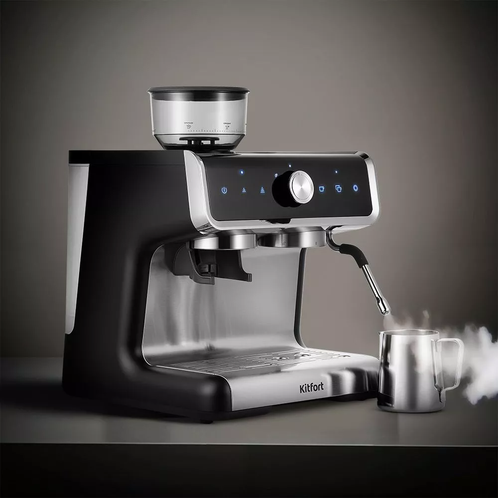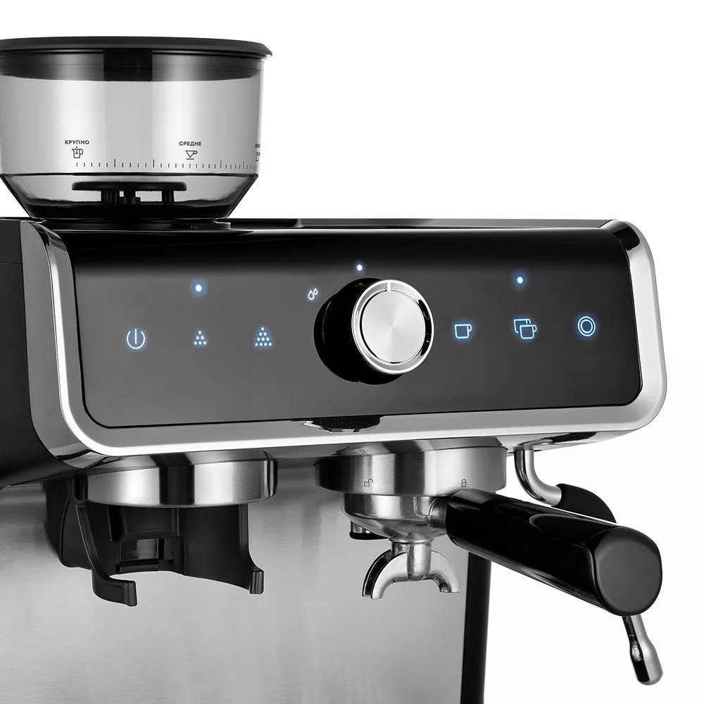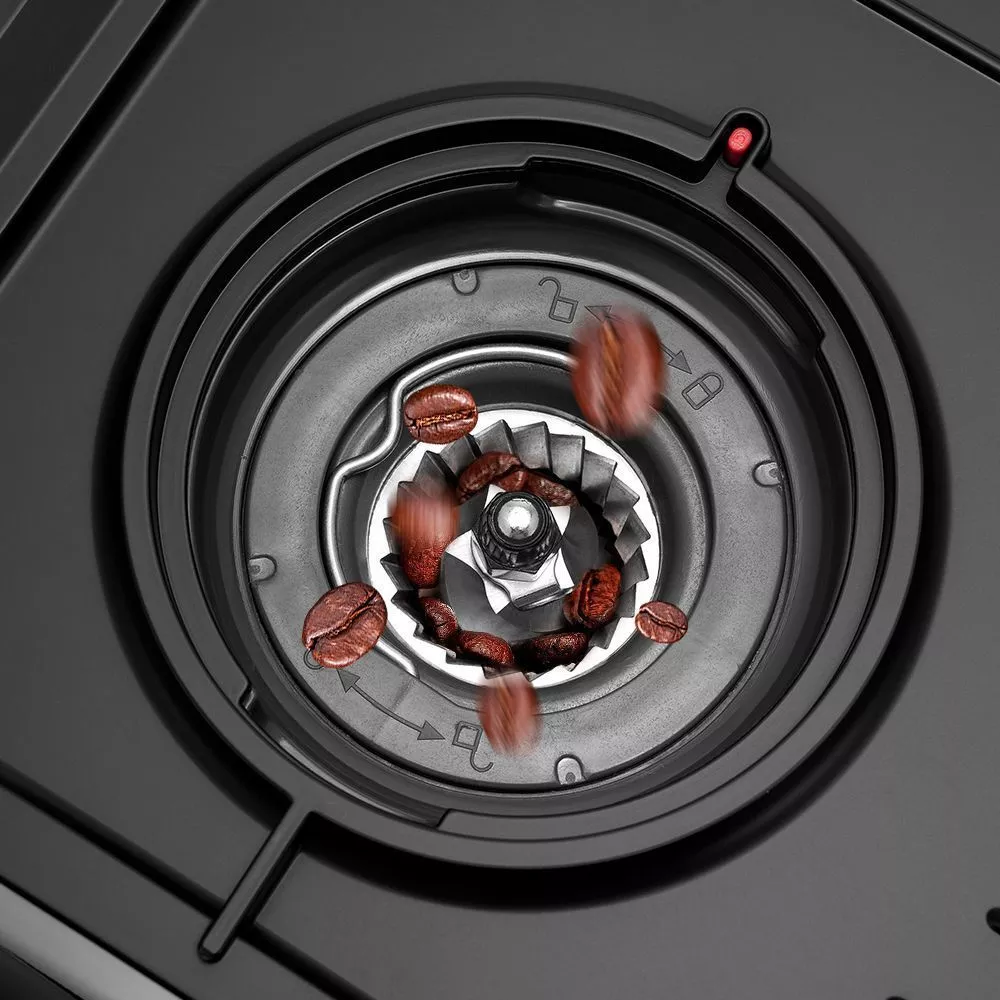 Встроенная кофемолка с коническими металлическими жерновами позволяет качественно измельчать кофейные зёрна перед приготовлением кофе, что положительно отражается на вкусе готового напитка.