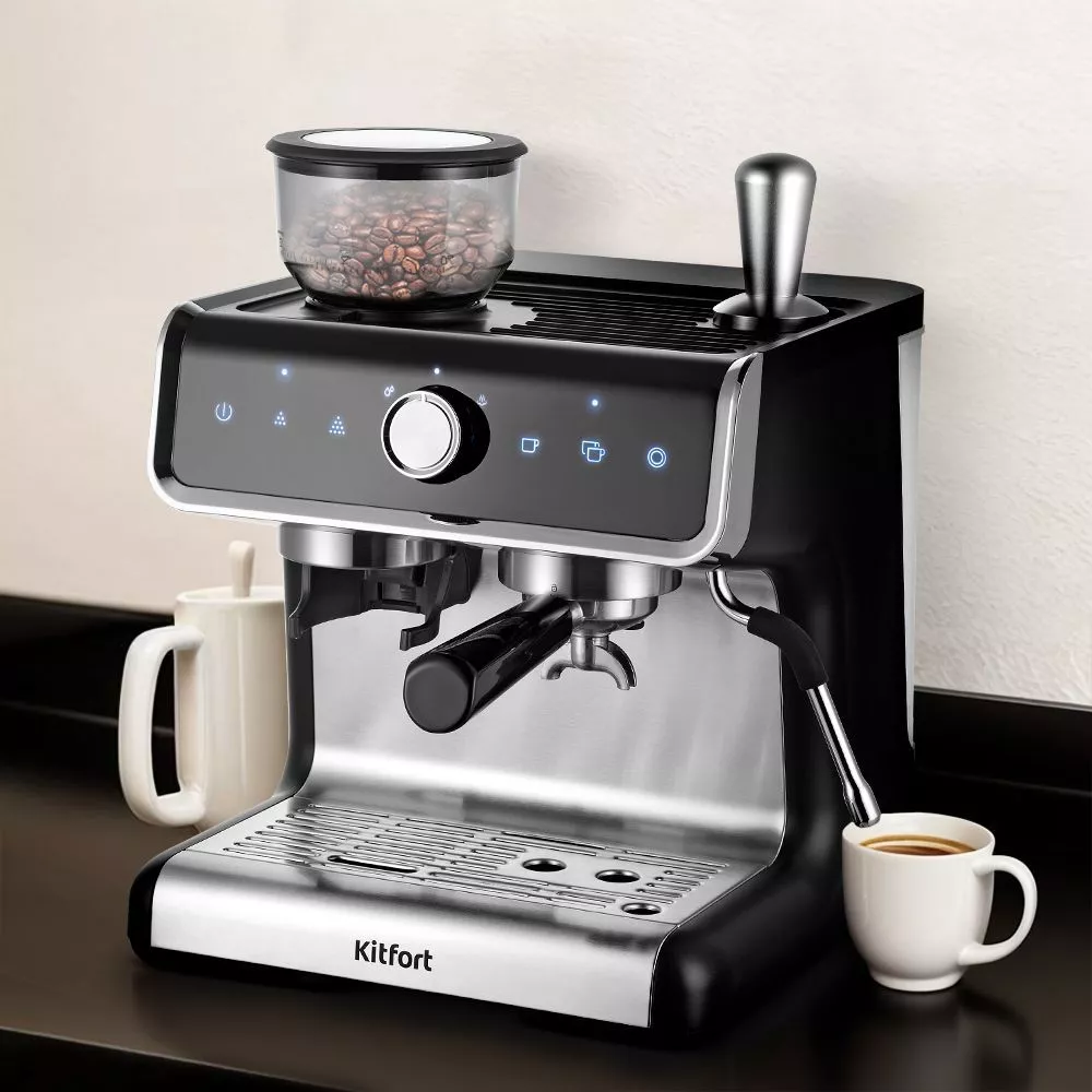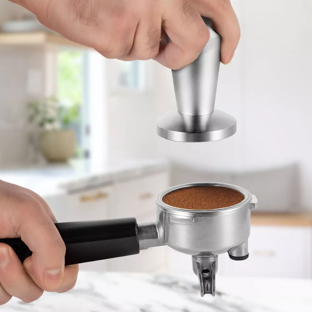 Ключевым отличием кофейной станции от всех остальных кофейных устройств является наличие рожка, его часто называют холдер. Молотый кофе помещается в фильтр рожка и прессуется в таблетку. Процесс трамбовки также называют темперовкой.
