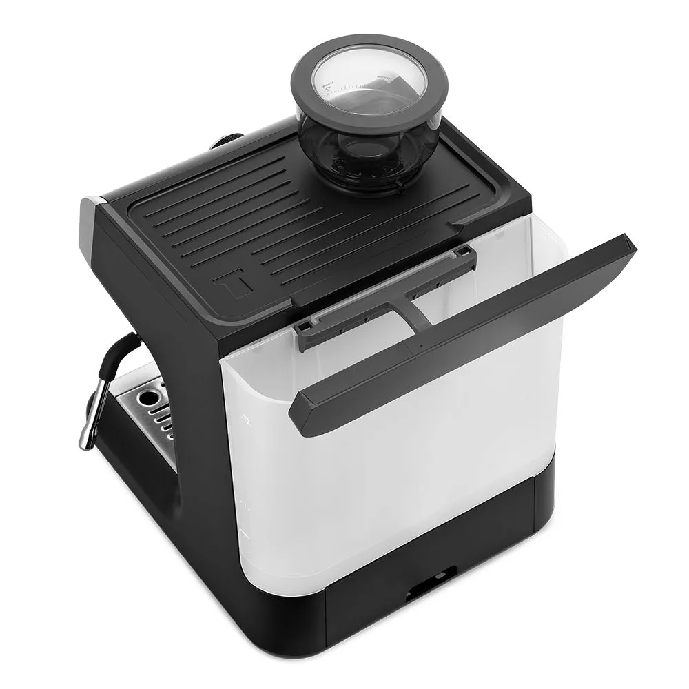 В комплекте к кофейной станции идут 2 фильтра, рожок, темпер, питчер, кисточка, ёршик для чистки. Все комплектующие выполнены из надёжных материалов. Поддон для сбора капель с решёткой легко снимается, моется и устанавливается обратно.