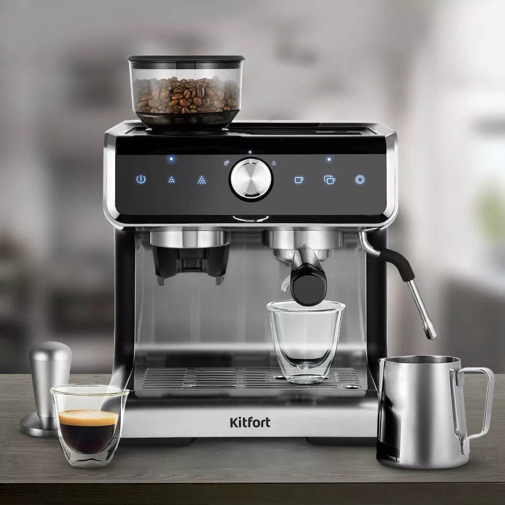 КТ-7173 позволяет настроить степень и время помола кофейных зёрен, объём и температуру кофе. Степень помола кофейных зёрен настраивается поворотом резервуара для кофейных зёрен. С регулятором помола вы можете выбрать не только помол, подходящий для приготовления кофе в кофейной станции, но и грубый или более мелкий помол. Кнопки «Эспрессо» и «Двойной эспрессо» включает приготовление порций эспрессо.