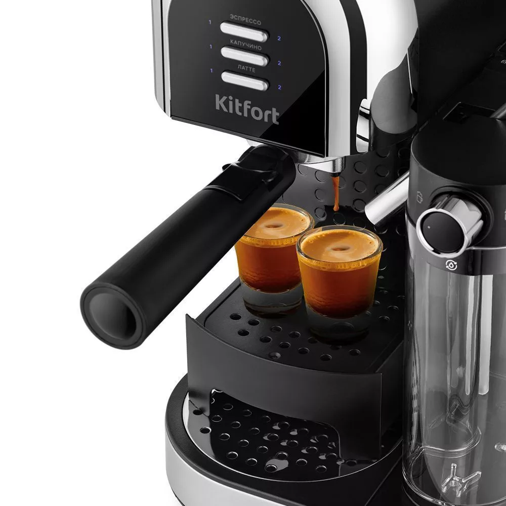 Любите пить эспрессо из маленькой чашки? Выдвижная площадка на корпусе кофеварки специально предусмотрена для того, чтобы каждая капля любимого эспрессо попадала даже в маленькую кружку. Удержанием кнопки «Эспрессо» можно запрограммировать объём кофе, кнопки "Капучино" - запустить приготовление исключительно молочной пенки. Удержание кнопки «Латте» включает автоматическую очистку резервуара для молока. У кнопок есть световой индикатор.