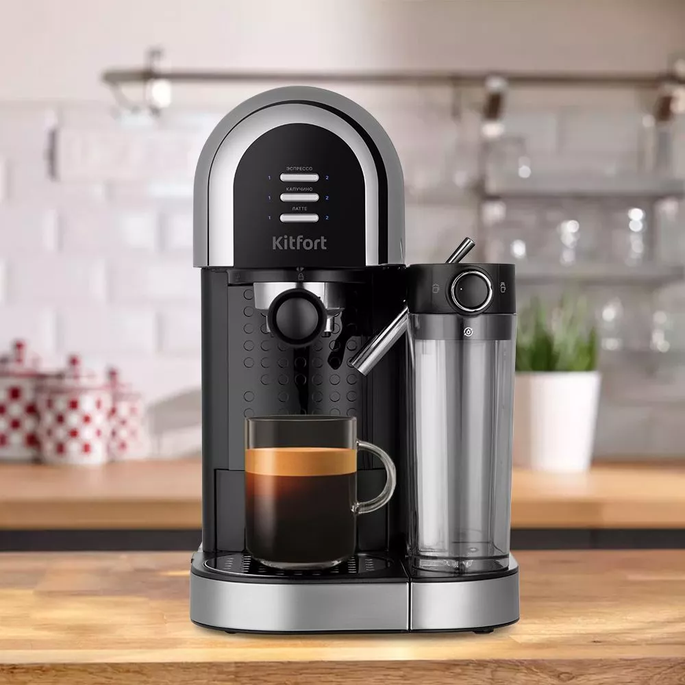 Трубка забора молока находится в резервуаре и погружена в холодное молоко. Во время приготовления капучино или латте, кофеварка приготовит эспрессо, автоматически взобьёт молочную пену и подаст её прямо в чашку. Вам необходимо только добавить молоко.