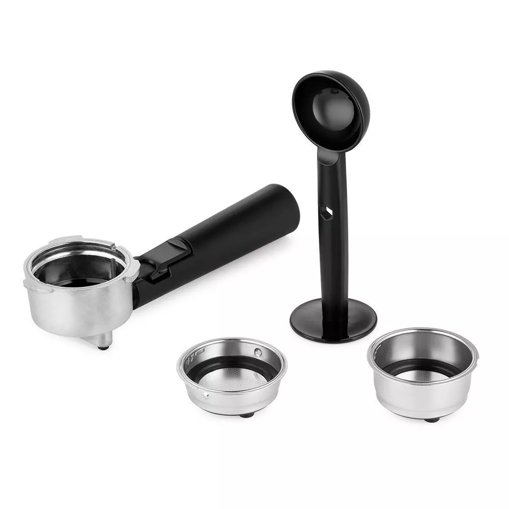 Металлические фильтры с лазерным нанесением отверстий долговечны и не требуют использования расходующихся частей. Рожок хорошо прогревает напиток, делая его насыщенным. Мерная ложка-темпер поможет наполнить рожок и утрамбовать в нем кофейную таблетку.