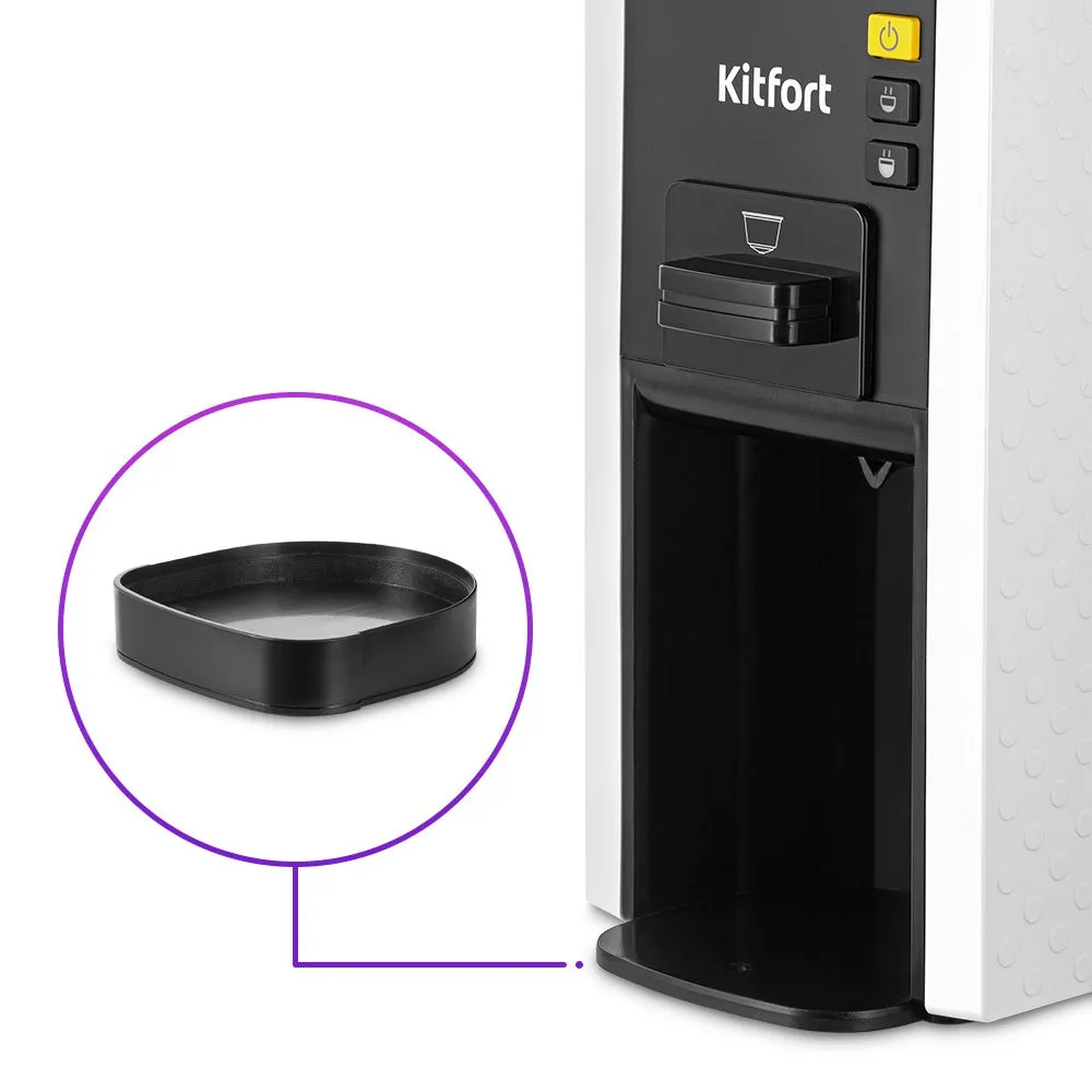 Поддон съёмный и состоит трех частей. Сняв поддон, решётку можно установить на вставку, чтобы под адаптер помещались более высокие чашки. В кофеварку помещаются чашки высотой 9–11 см.