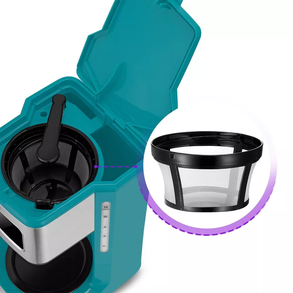 При приготовлении кофе вода нагревается, а затем подаётся в фильтр с молотым кофе. Многоразовым фильтром можно пользоваться неограниченное количество раз. Пройдя через фильтр, кофе попадает в кофейник. Воронка кофеварки оборудована противокапельной системой – затвором, приостанавливающим подачу кофе при вынимании кофейника из кофеварки. Вы можете налить кофе в чашку, не дожидаясь окончания приготовления.