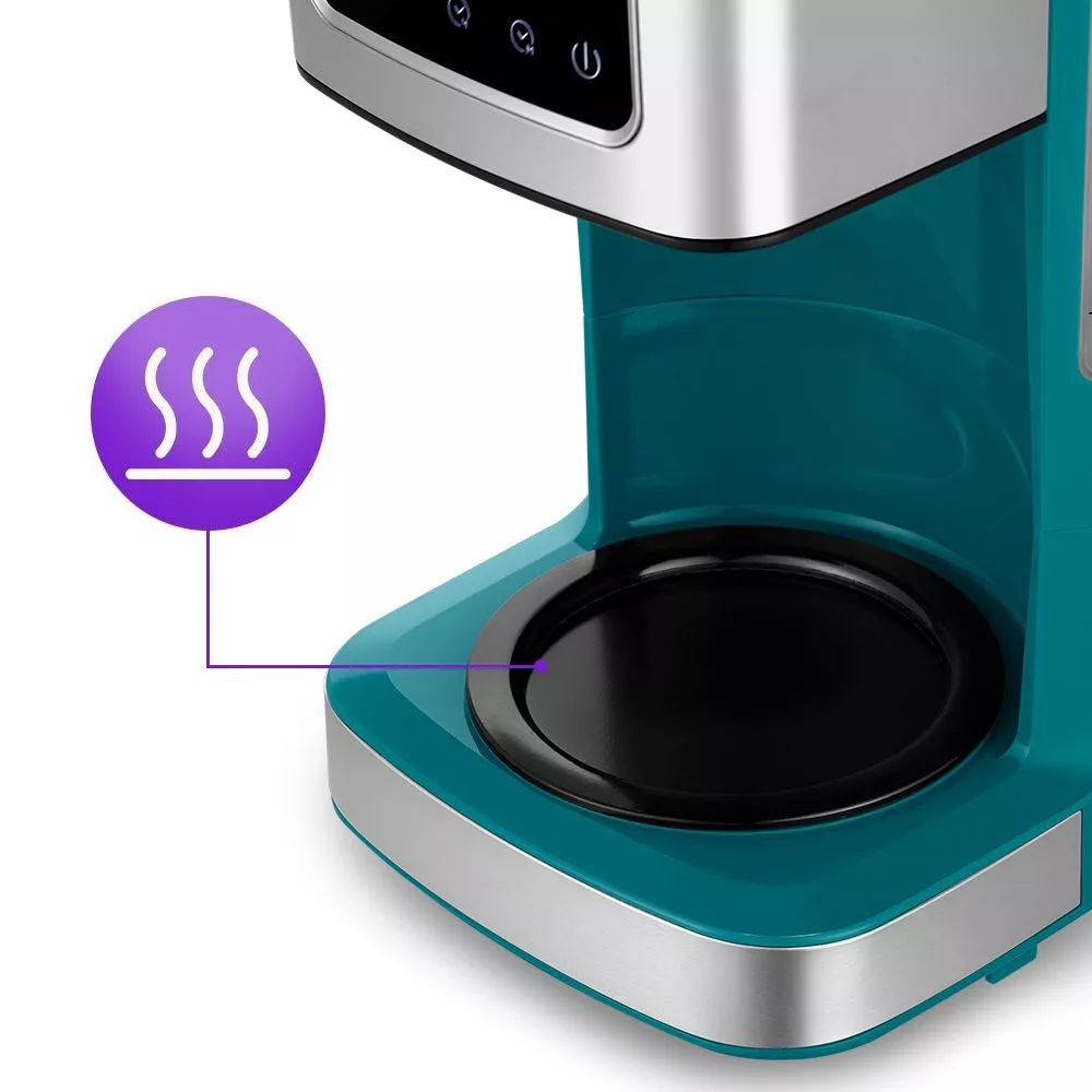 В месте установки кофейника находится платформа для подогрева. По завершении приготовления кофе включается подогрев. Платформа с подогревом будет подогревать кофейник в течение 120 минут, затем прибор автоматически выключится.