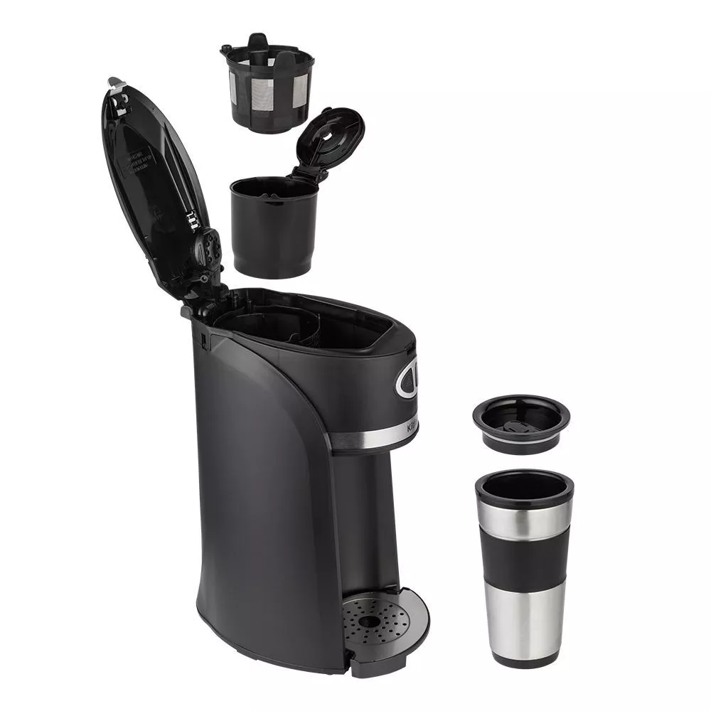 Термокружка выполнена из пластика и нержавеющей стали с силиконовой вставкой, которая не дает вам обжечься. Крышка термокружки позволяет пить кофе на ходу, благодаря удобной форме отверстия для питья, которое можно закрывать.