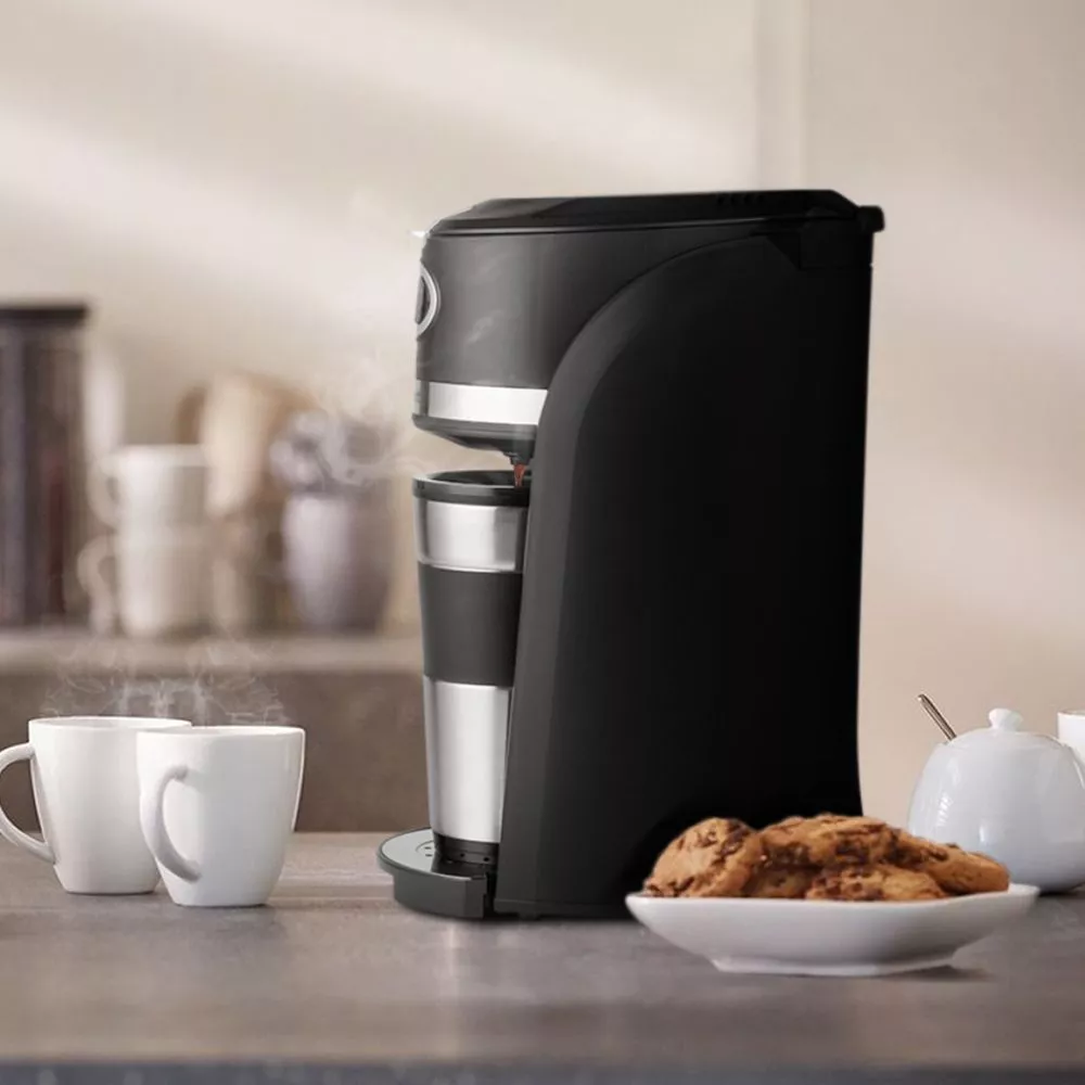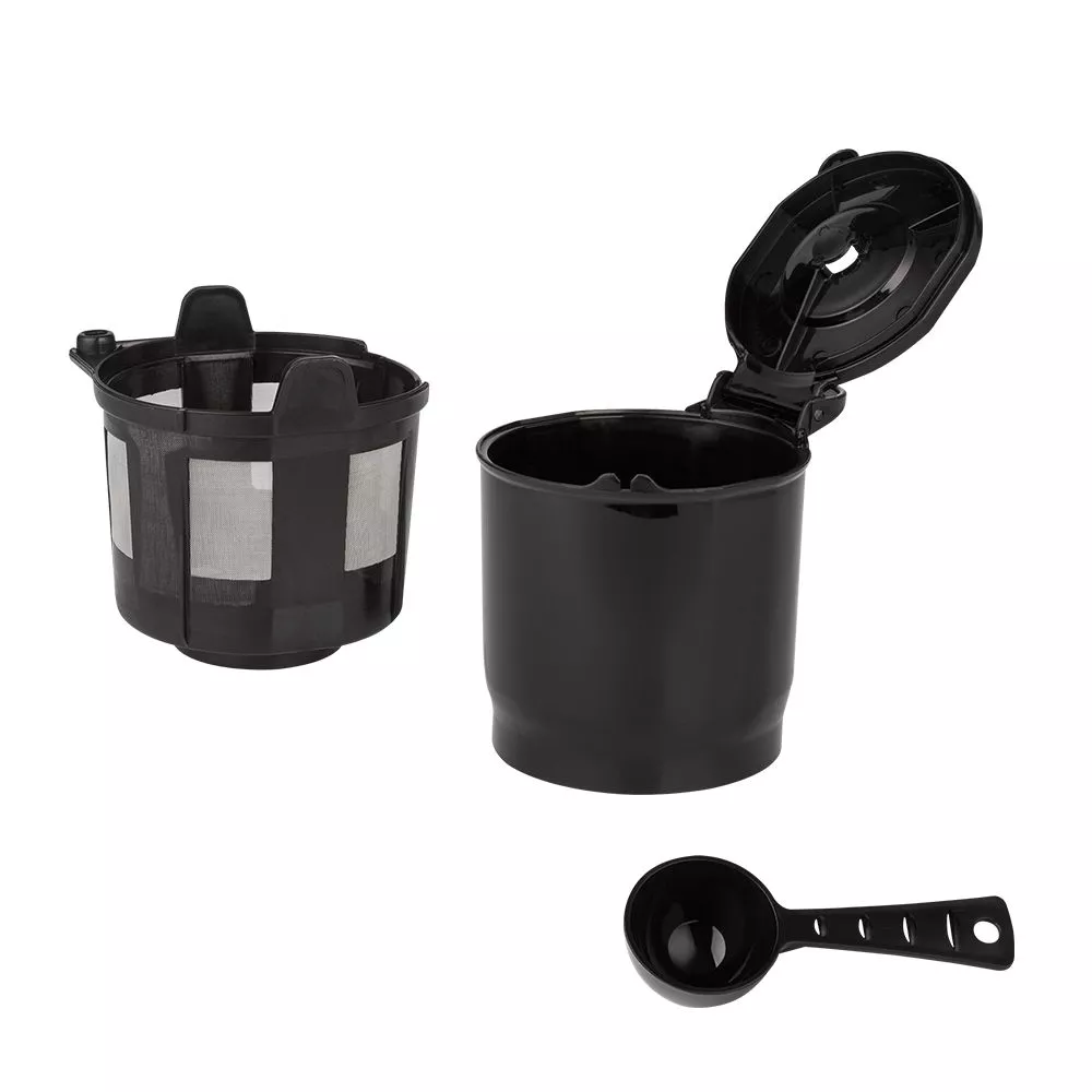В кофеварке вода доводится до температуры 80-90 °С, после чего поступает в фильтр с кофе. Сетка фильтра кофемашины изготовлена из нержавеющей стали и подходит для использования неограниченное количество раз. В резервуаре для воды есть отметки 300, 360 и 420 мл.