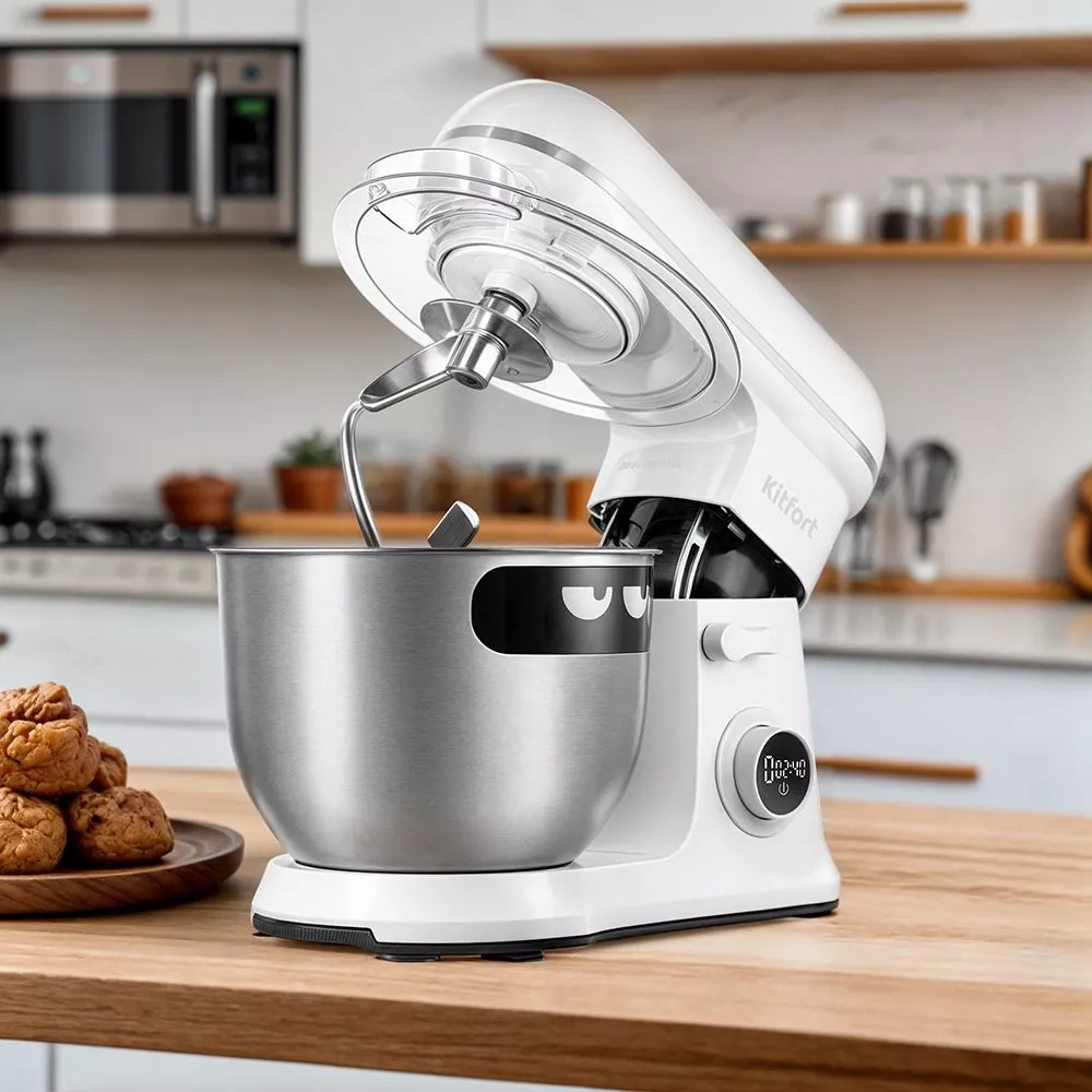 Планетарный миксер КТ-4401 имеет минималистичный дизайн, который подойдёт к любому интерьеру кухни. У КТ-4401 компактный размер, но при этом у него есть всё необходимое для приготовления разнообразных блюд. Любимая еда с ним станет ещё вкуснее!