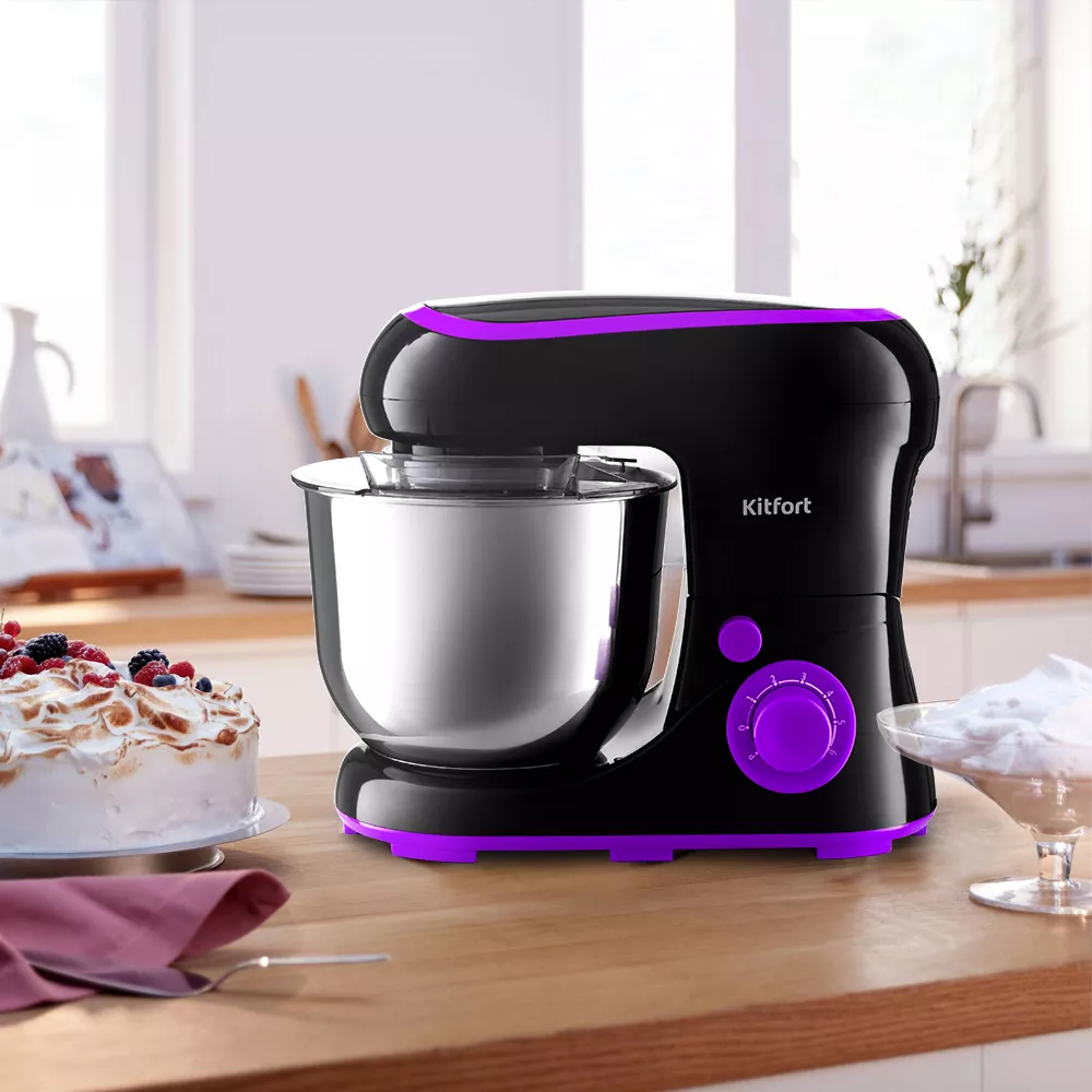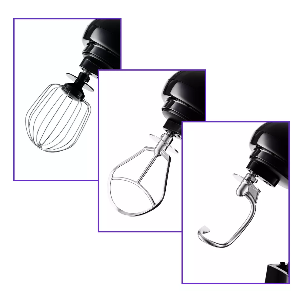 В комплекте идут 3 насадки для взбивания, приготовления пюре и крюк для замеса крутого теста.