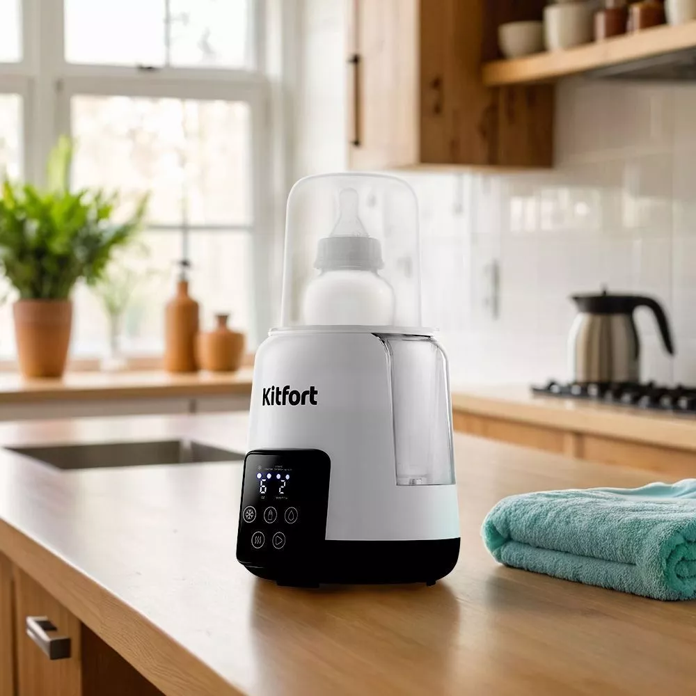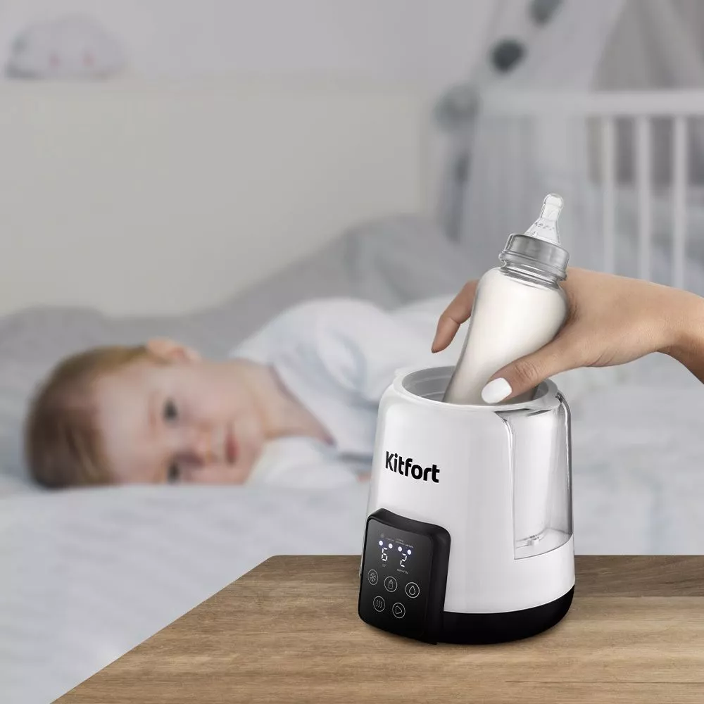 Подогреватель сохраняет витамины детской смеси и грудного молока, так как молоко или смесь в приборе не перегревается. КТ-2331 обеспечивает равномерный нагрев до 37 °С. Встроенный датчик предотвращает перегрев. В комплекте к прибору идёт мерный стакан.
