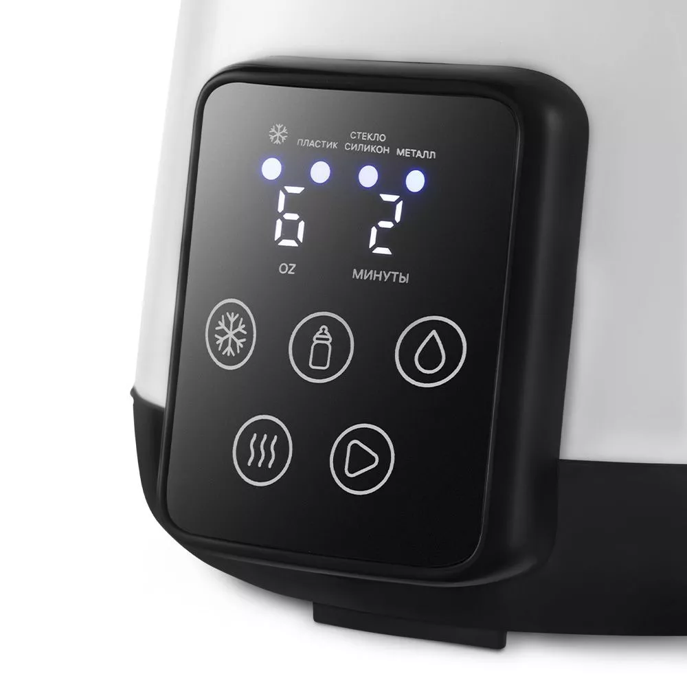 Подогреватель можно применять для стерилизации сосок и пустышек. Залейте в чашу подогревателя 80 мл воды и выберите режим «Стерилизация». По прошествии 8 минут устройство подаст звуковой сигнал. Готово!