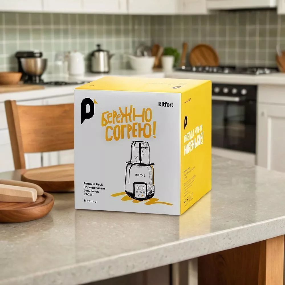 Подогреватель бутылочек КТ-2331 выполнен в дизайне коллекции «Penguin Pack», который отражает энергию и яркость нового маскота - пингвина по имени Питер. В комплекте с прибором вы найдёте креативный магнит с этим персонажем.