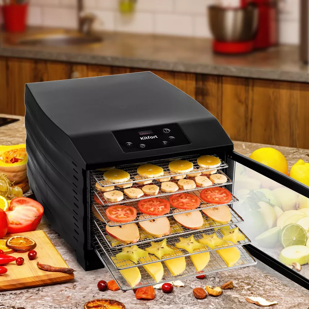 На сушилке можно установить температуру сушки в диапазоне 35–75˚С с шагом 1 градус. Сушилка оснащена таймером до 24 часов работы с шагом 30 минут.