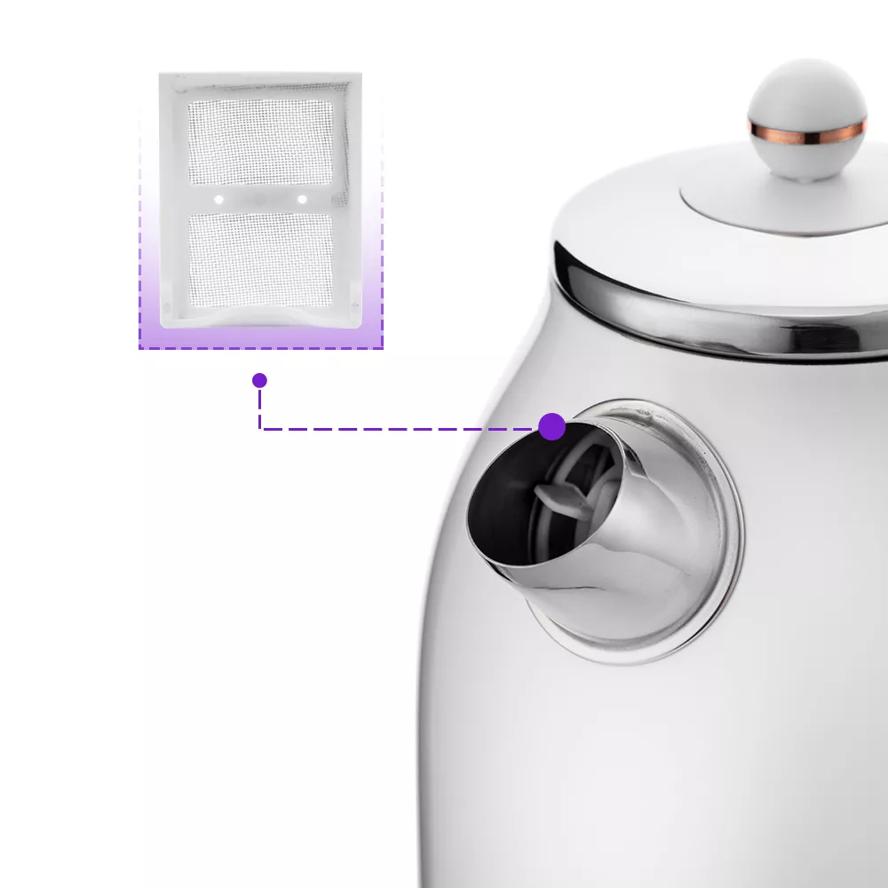 Чайник оснащён контроллером Strix - № 1 среди поставщиков компонентов для электрочайников. Он устраняет риски короткого замыкания и возгорания прибора. Обеспечивает защиту при закипании, при включении чайника без воды.