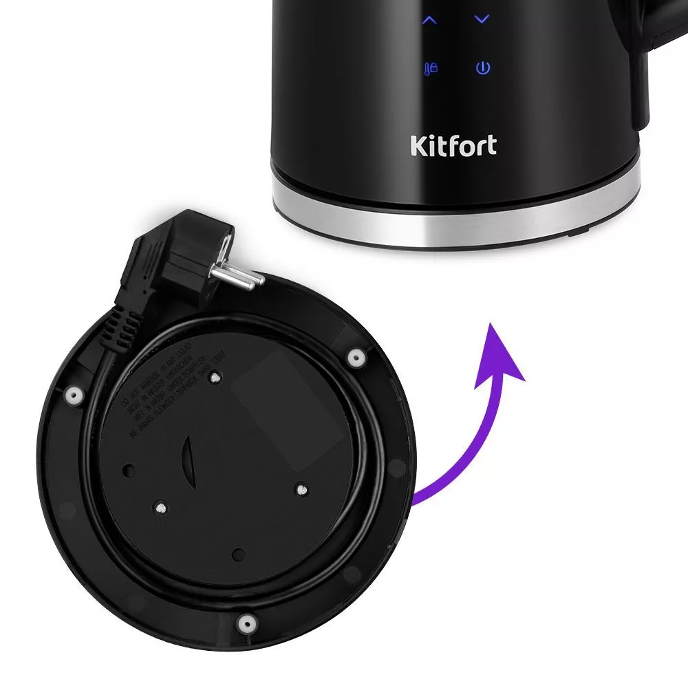 Подставка с центральным контактом даёт возможность располагать на ней чайник в любом положении, обеспечивая вращение на 360°. На дне подставки имеется отсек для хранения шнура, чтобы излишки шнура не мешали на столе.