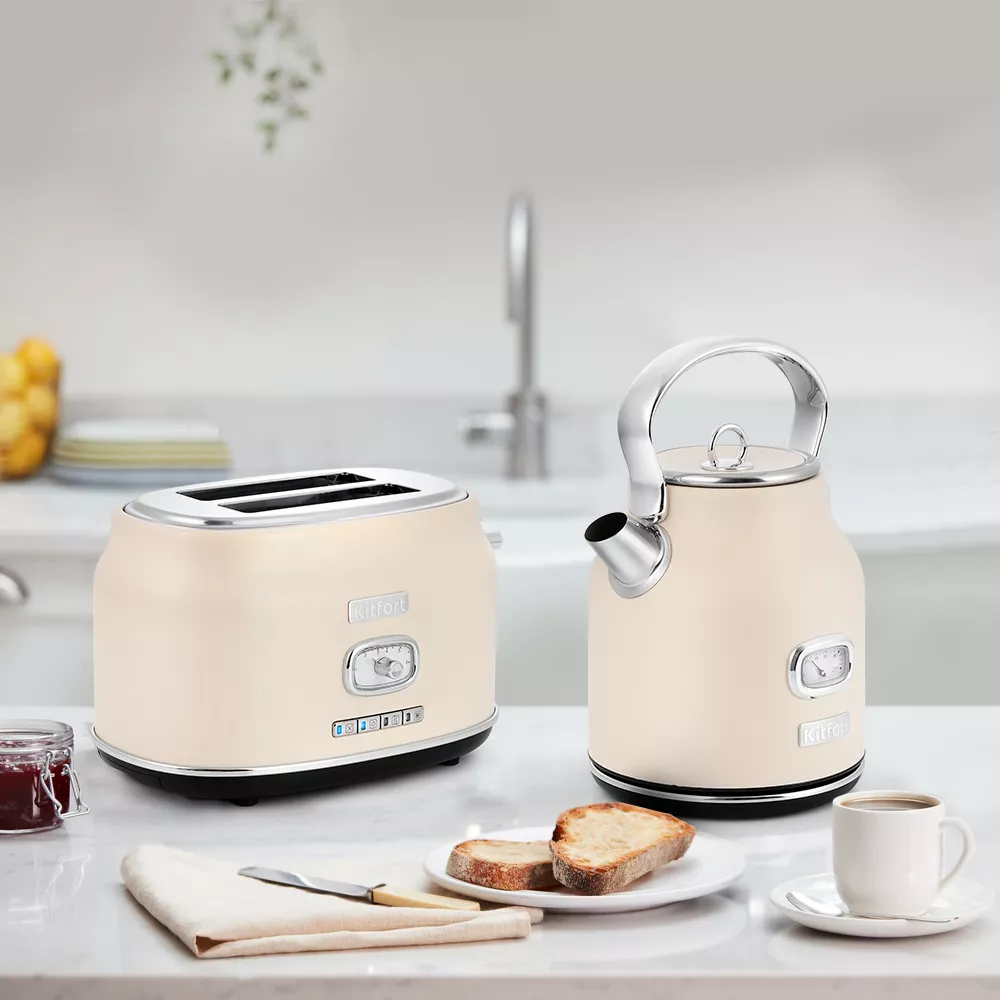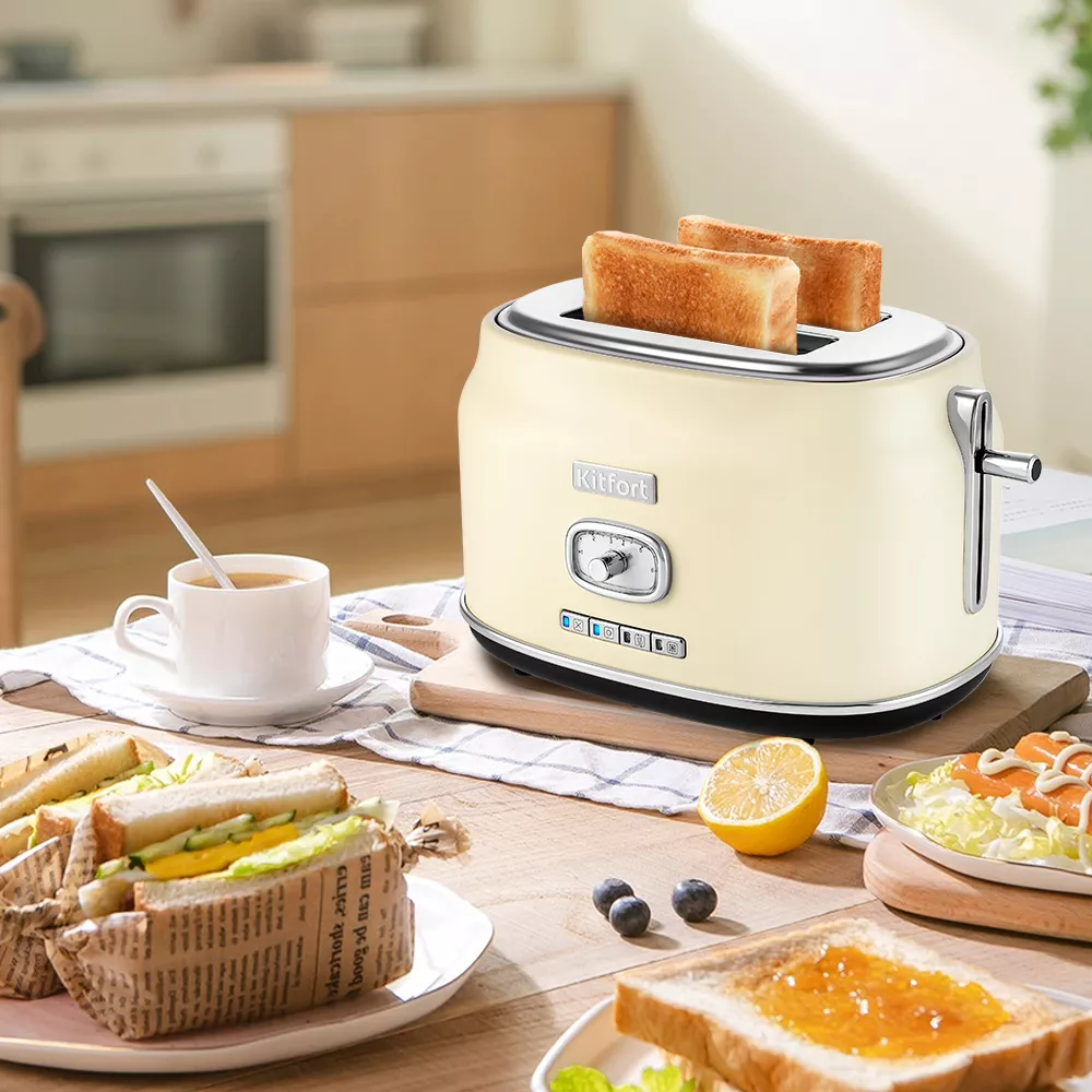Тостер оснащён регулятором степени обжаривания и 4 кнопками. Есть режим «подогрева» для подогрева готовых тостов, «разморозка», а также режим «бейгл» для поджарки рогаликов или других мучных изделий, которые требуют более интенсивной прожарки. Благодаря широким слотам можно поджаривать толстые куски хлеба, а не только тонкие. Загруженные тосты автоматически центрируются, чтобы их обжарка с двух сторон была равномерной независимо от толщины куска.