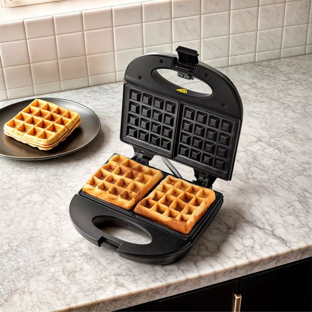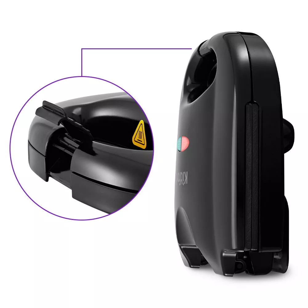 Зажим вафельницы не только обеспечивает идеальное приготовление вафель, но и служит для удобного хранения вафельницы. Также вафельница оснащена противоскользящими ножками, которые предотвращают её скольжение по столу во время приготовления.