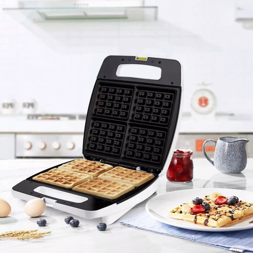 Вафельница оснащена индикатором питания, термостатом для поддержания температуры панелей и индикатором нагрева, который покажет, когда панели разогреются. В вафельнице установлены нагреватели в каждой половине, так вафли пропекаются равномерно.