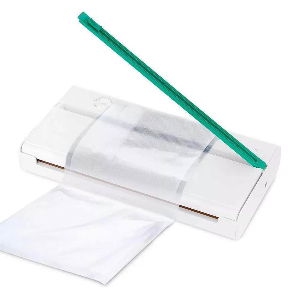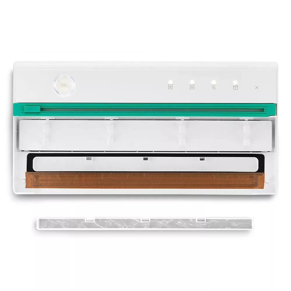 В модели КТ-1540 предусмотрен специальный резак. С его помощью вы можете самостоятельно сделать вакуумные пакеты. Вначале сформируйте дно пакета, запаяв открытый конец рукава плёнки, а затем с помощью бегунка с лезвием отрежьте необходимую длину.