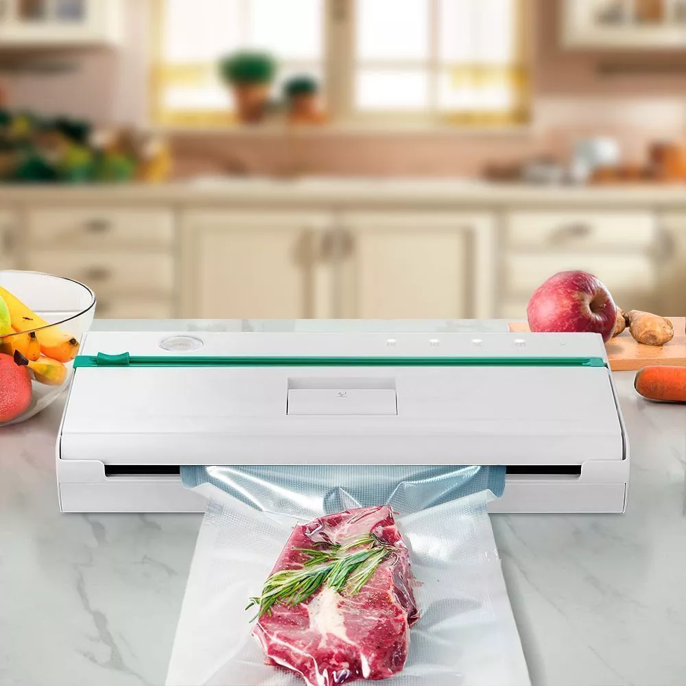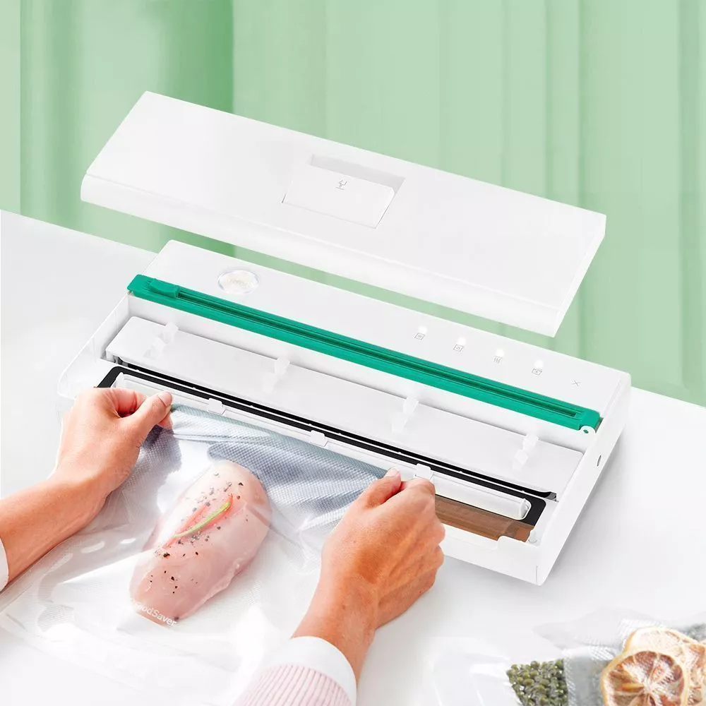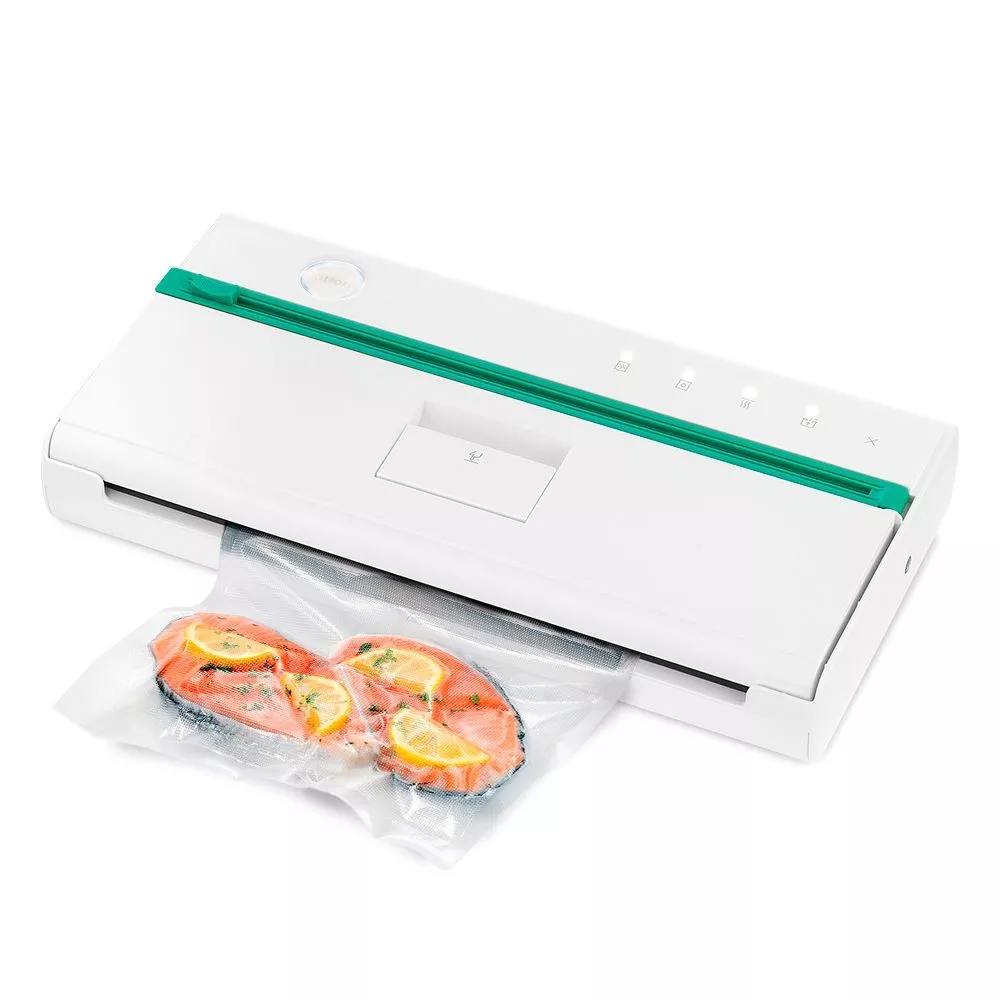 Вакууматор имеет сенсорное управление с удобной индикацией на верхней панели. Устройство может в автоматическом режиме откачать воздух из пакета, а затем запечатать его. А также вы можете произвести все этапы вакуумирования в ручном режиме.
