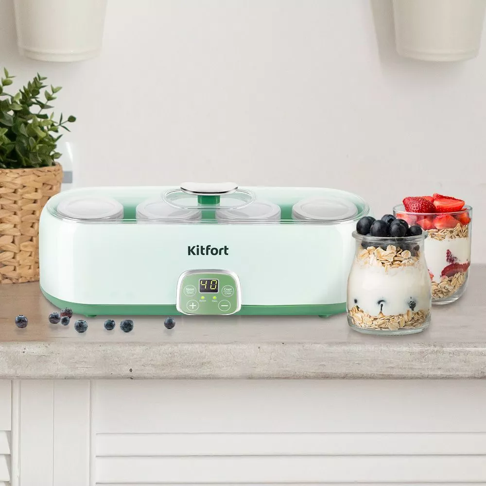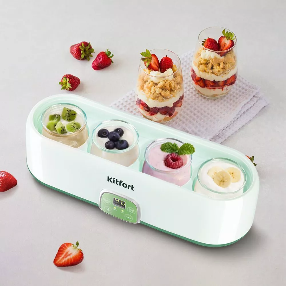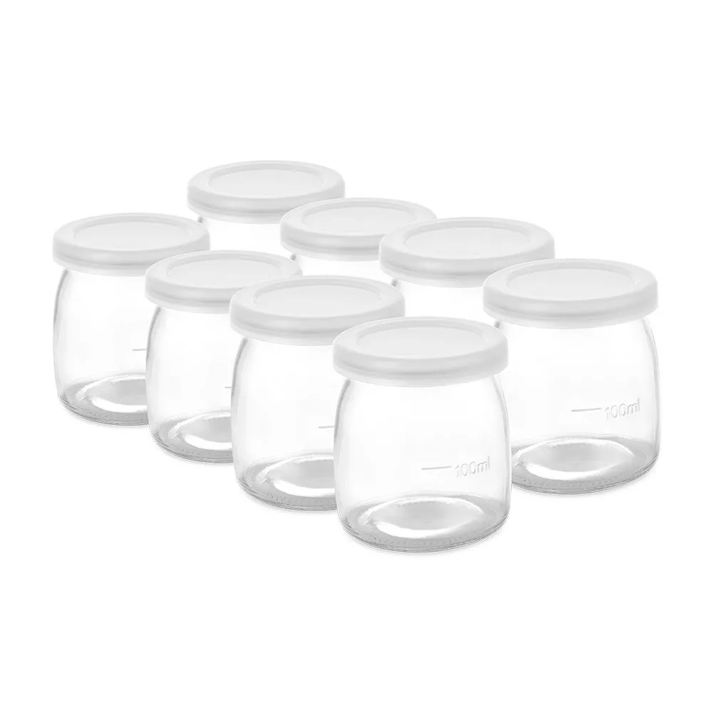 К йогуртнице идут 8 стеклянных баночек по 200 мл, в которых готовый йогурт можно хранить в холодильнике. Стеклянные баночки сохраняют натуральные свойства домашнего йогурта, а также являются экологически чистым материалом.