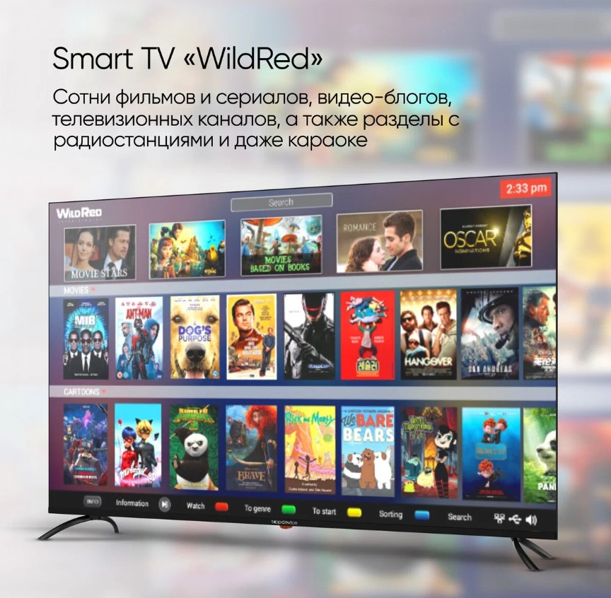 WildRed - встроенный в телевизор инновационный сервис, превращающий его в настоящий развлекательный центр. Он открывает доступ к большому количеству цифрового контента, среди которого новые фильмы, зарубежные сериалы, спортивные трансляции, игры и многое другое.