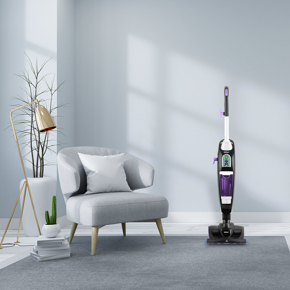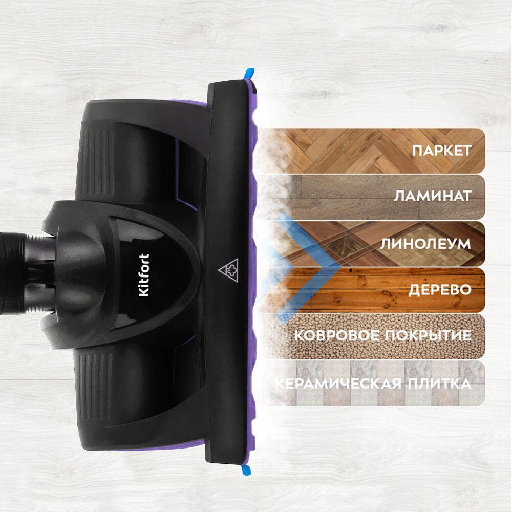 Паровым пылесосом Kitfort КТ-535 с функцией регулировки подачи пара можно пользоваться как пылесосом и паровой шваброй по отдельности, так и одновременно — всасывая пыль, мелкий мусор, очищая поверхность от грязи, въевшихся пятен и жира при помощи горячего пара.