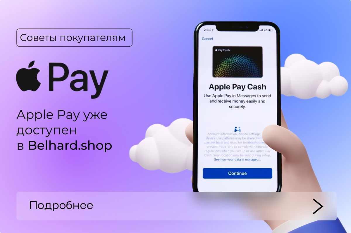 В Belhard.Shop теперь доступен способ оплаты покупок с помощью Apple Pay. Это значит, что теперь процесс оформления заказа стал еще проще. Вам больше не нужно вводить данные карты и ждать код подтверждения. Одно касание - и заказ уже в обработке!