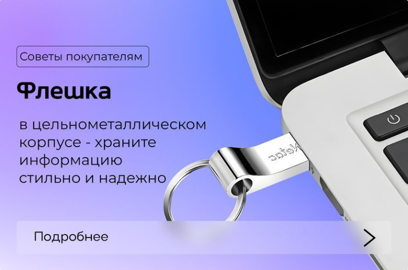 Флешка в цельнометаллическом корпусе – храните информацию стильно и надежно.