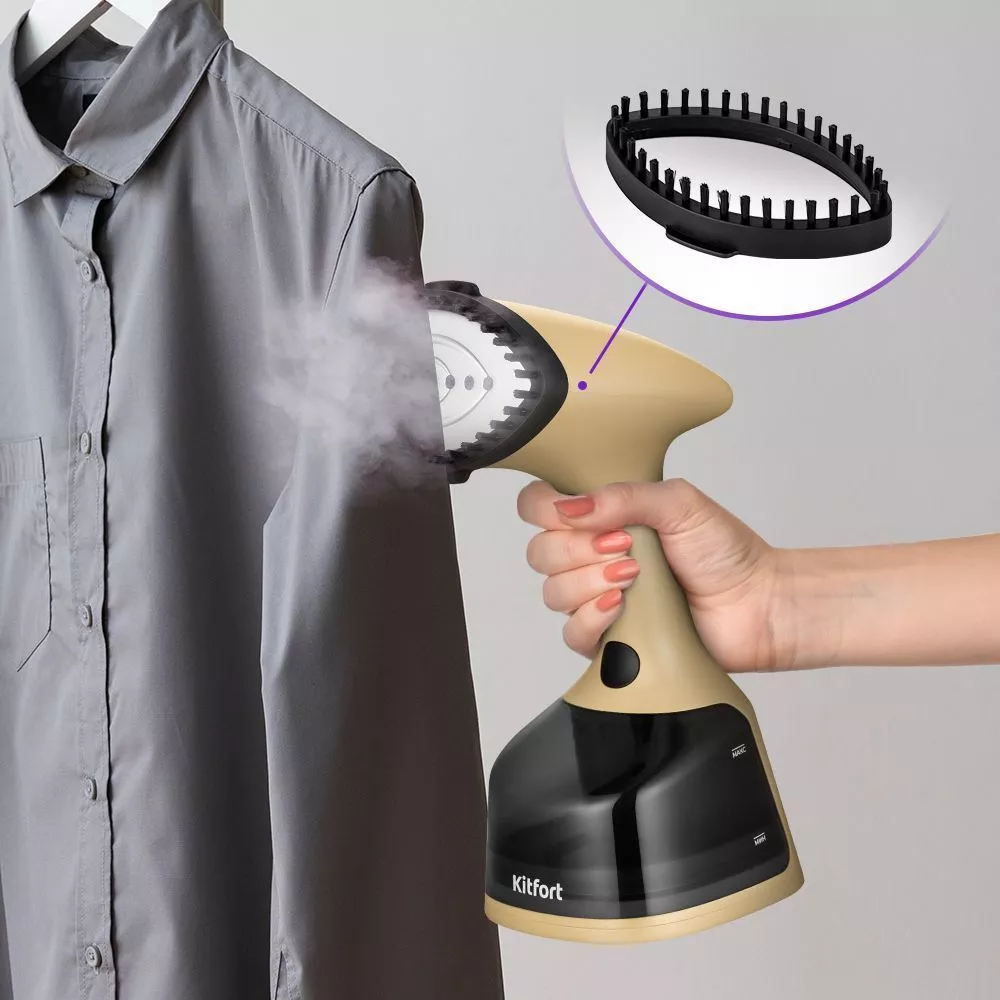 В комплекте идёт ворсовая щётка, которой легко очищать текстиль от шерсти, ворса и волос. Пар снимает у загрязнения электрический заряд, и они легко счищаются ворсовой щёткой.