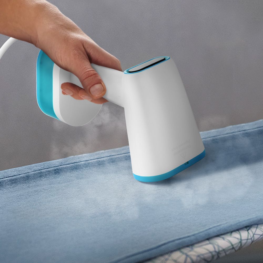 У устройства 2 режима работы. В режиме сухой глажки вы можете гладить вещи рабочей поверхностью прибора как обычным утюгом. Температура поверхности составляет 100-120 °C, а температура пара - 98-140 °C. При нажатии на кнопку «Вкл/Выкл» резервуар подсвечивается.