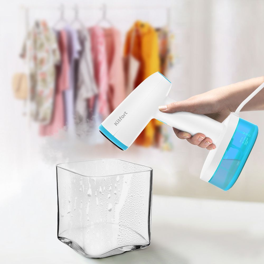 Ручной отпариватель КТ-984 очень компактный, лёгкий и стильный! Его удобно брать с собой в дорогу. При своих небольших размерах, устройство обладает мощностью, как у большинства напольных отпаривателей — 1600 Вт!