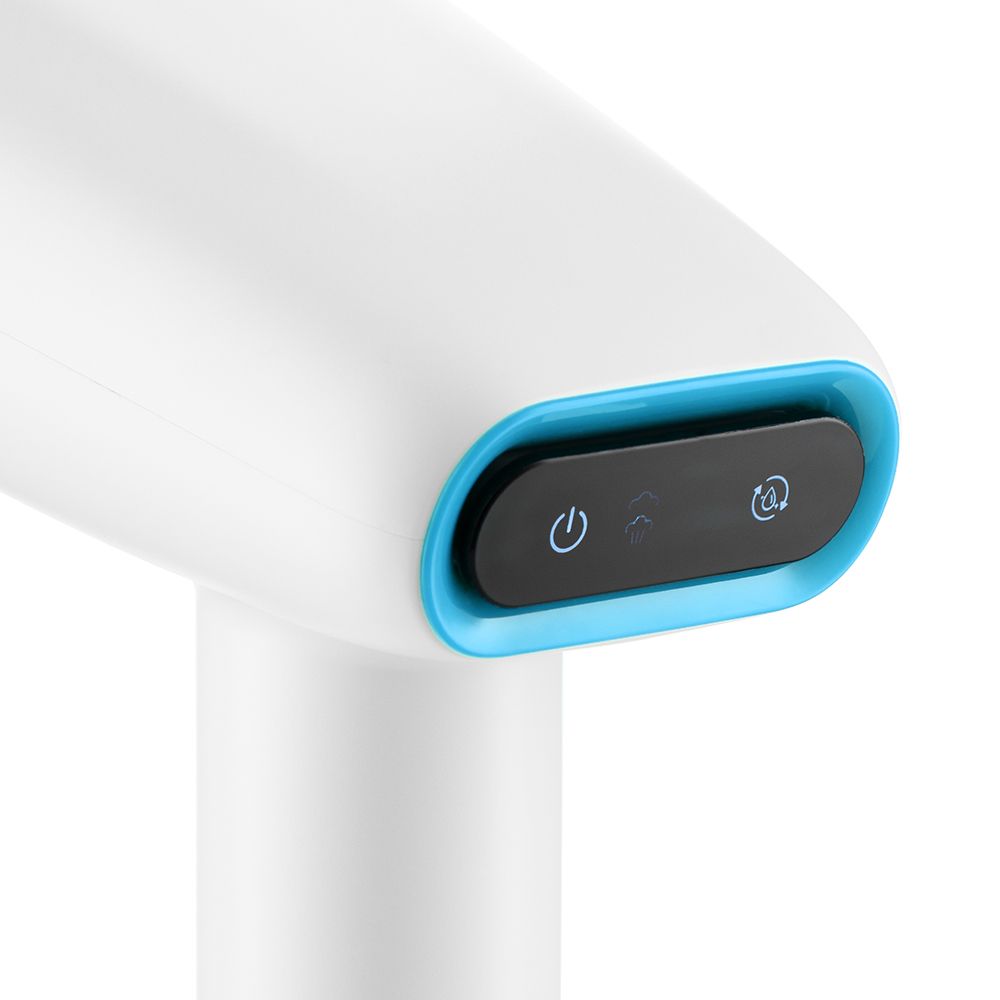 Управление у отпаривателя сенсорное. Световая индикация показывает, готов ли прибор к работе или бойлер еще в процессе нагрева.